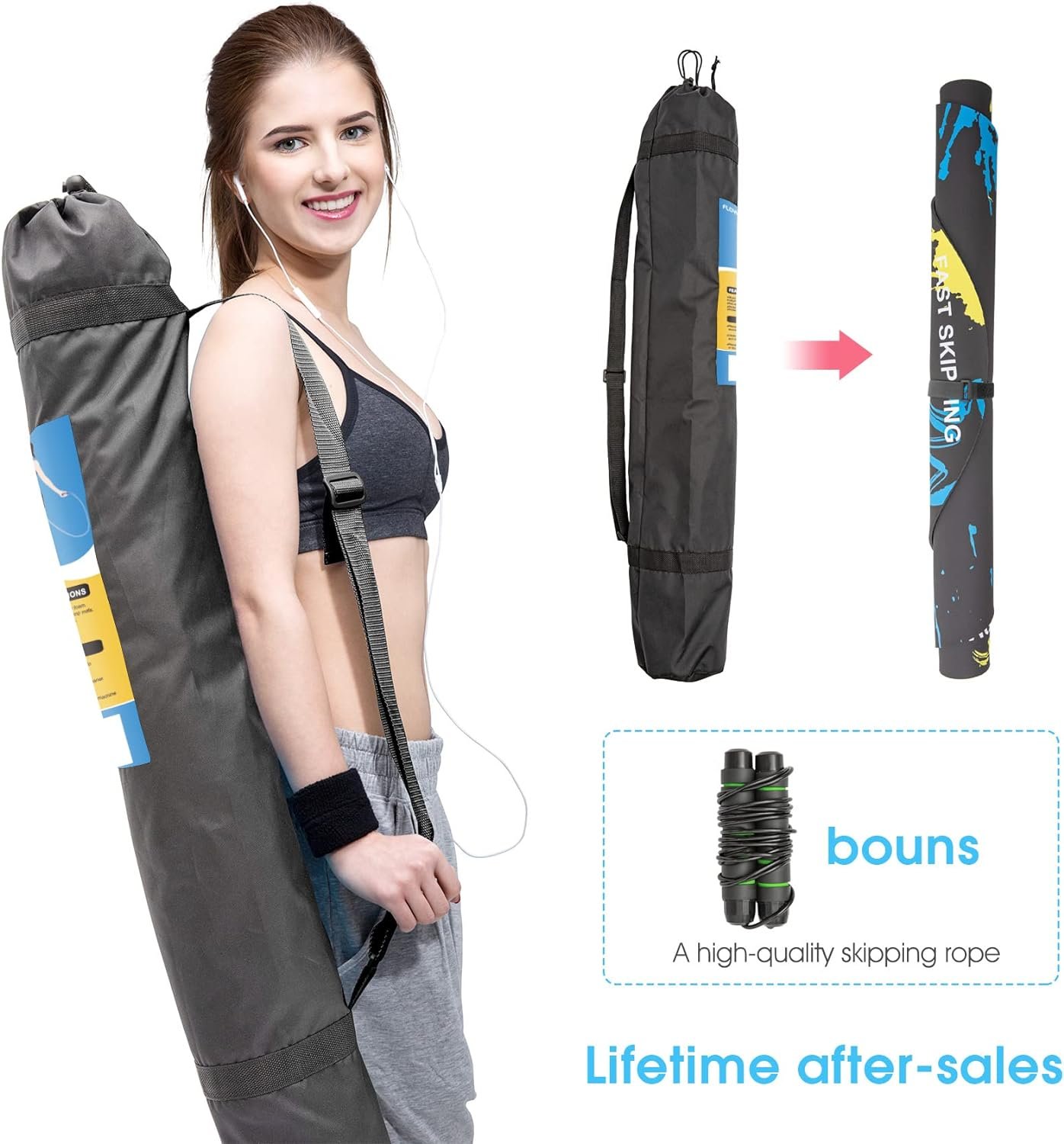 Multipurpose use mat: not only can jump rope, but also can be used as equipment mat, dance mat, yoga mat and children’s play mat. Whether at home or outdoors, it can be easily moved when rolled up, reducing the burden of exercise