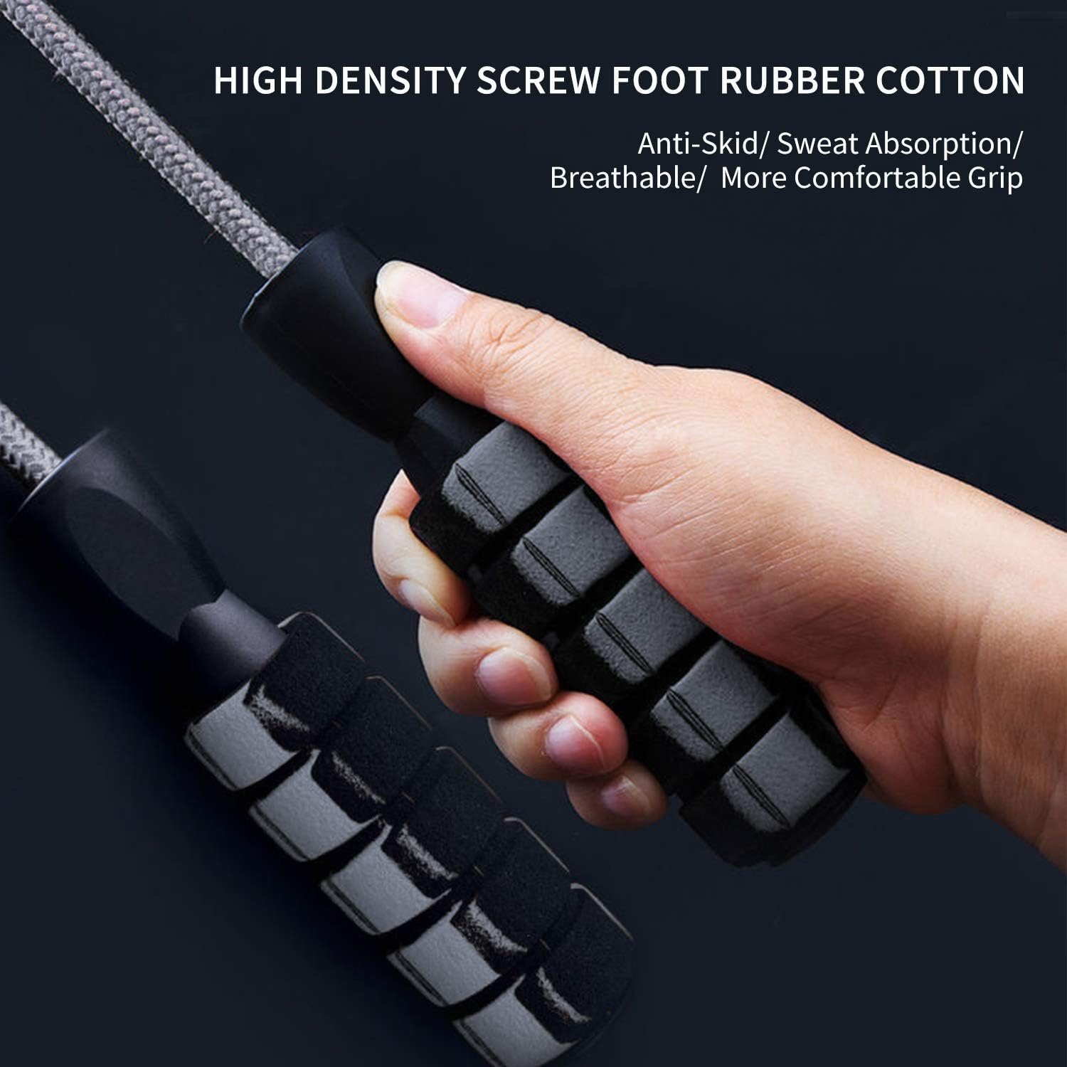 Comfortable & No More Tangling – The light weight ergonomic handles are made of memory foam, soft and comfortable, 6.1 inches long and 1.38 inches in diameter. High quality double ball bearings system avoids the twisting or winding like other fitness ropes, ensure smooth and rapid speed rotation.