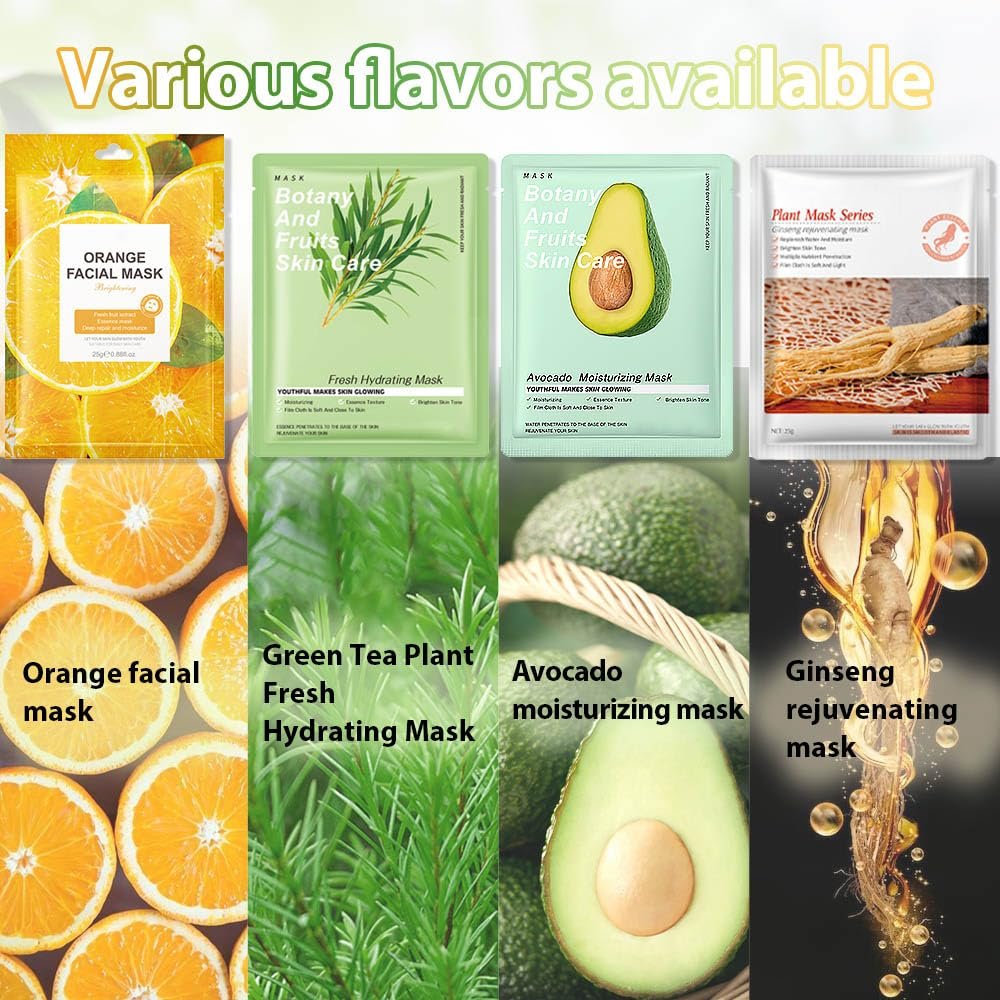 💝【10Pcs Set】:Hyaluronic Acid + Honey + Pomegranate + Aloe Vera + Orange + Tea Tree + Avocado + Ginseng + Cucumber + Green Plant