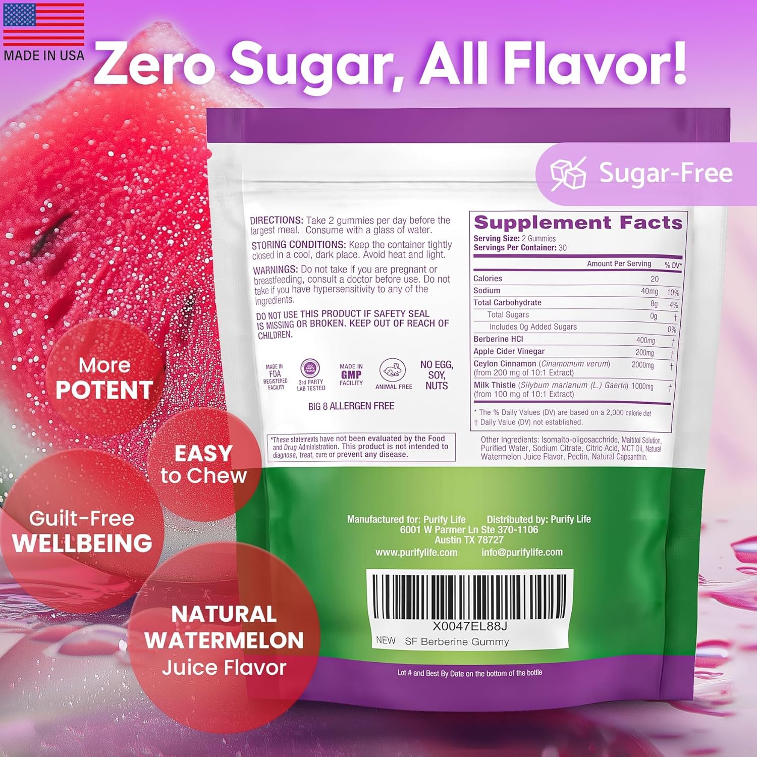 [AMPK Activator for Sugar Metabolism]: Purify Life’s berberine supplements can activate AMP-activated protein kinase (AMPK), a key enzyme involved in regulating cellular energy. Our berberine and cinnamon gummies help with I-sensitivity in the body when transporting sugar into cells, ultimately improving metabolism and gut health.