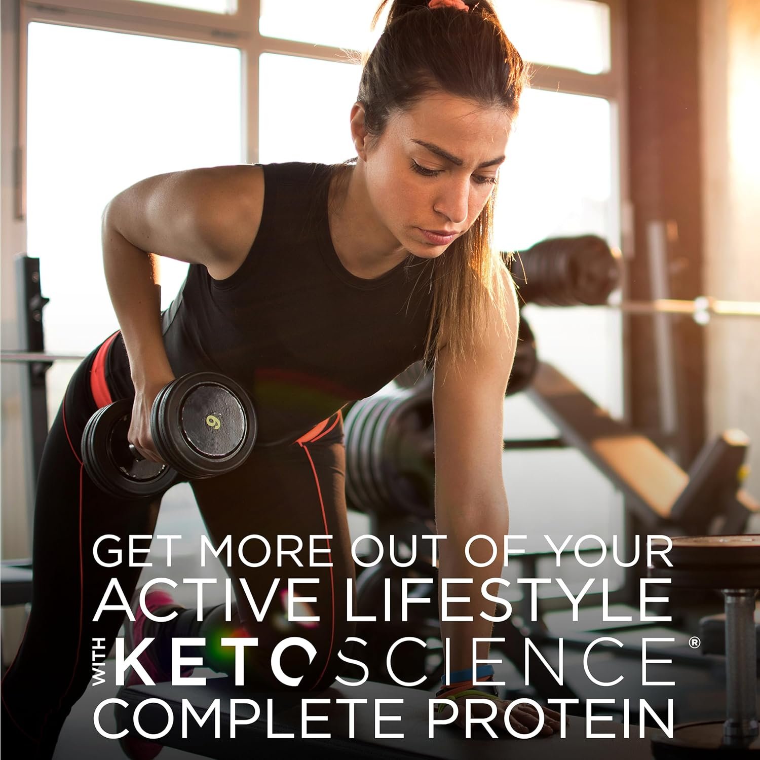 21 g fat. 8 g protein. 250 calories. Supports a ketogenic lifestyle. Energy boosting MCTs. Supports weight loss. 14 servings. Join the ketogenic lifestyle! KetoScience Keto Meal Shake is a scientifically formulated meal shake designed to support ketogenic, paleo and intermittent fasting programs. Formulated with 21 g of healthy fats from MCT to help promote energy and satisfy your appetite. Providing 8 g of complete protein and 26 essential vitamins and minerals KetoScience Keto Meal Shake provides balanced nutrition to help you support your ketogenic program. Mixed with water, blended with ice or added into a thick pudding, Keto Meal Shake is a satisfying and delicious meal or exceptional treat to keep you on your weight management program. Sold by weight, not by volume. Settling may occur. myKetoScience.com. www.canyonplastics.com. Facebook. Instagram. (at)myKetoScience. Please recycle. (These statements have not been evaluated by the Food and Drug Administration. This product is not intended to diagnose, treat, cure, or prevent any disease.) Made in the USA from globally sourced ingredients.