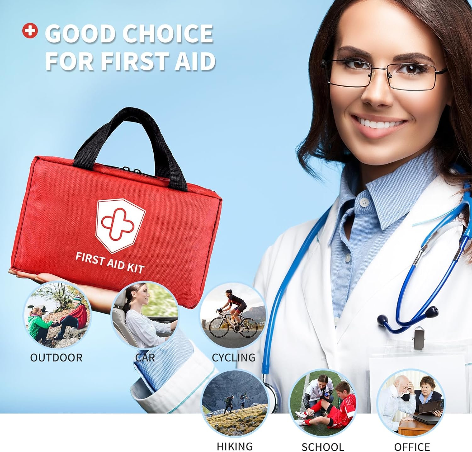 Compact and portable design: This first aid kit is not only complete but also compact and lightweight, making it easy to carry outdoors or store at home, in the car or at work