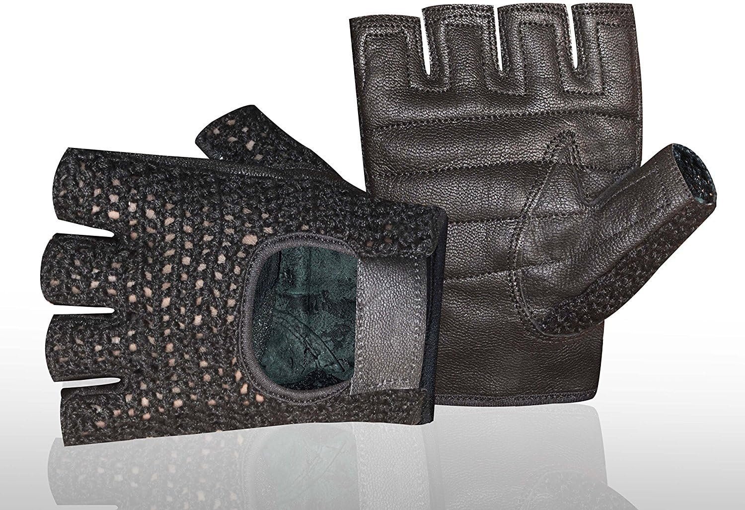Leather Crochet Fingerless Weight Lifting Exercise Gym Wheelchair Blac…