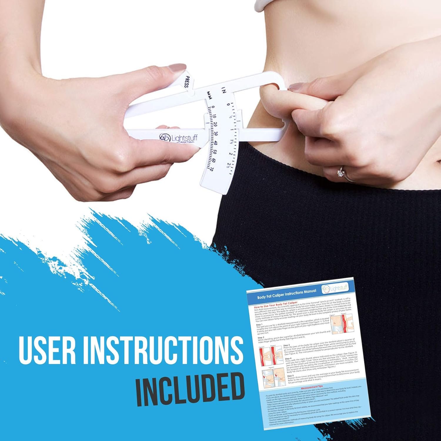 Lightstuff Body Fat Caliper comes with a user guide and body fat charts for men and women. They provide enough information to start measuring your body fat percentage on your own right away.