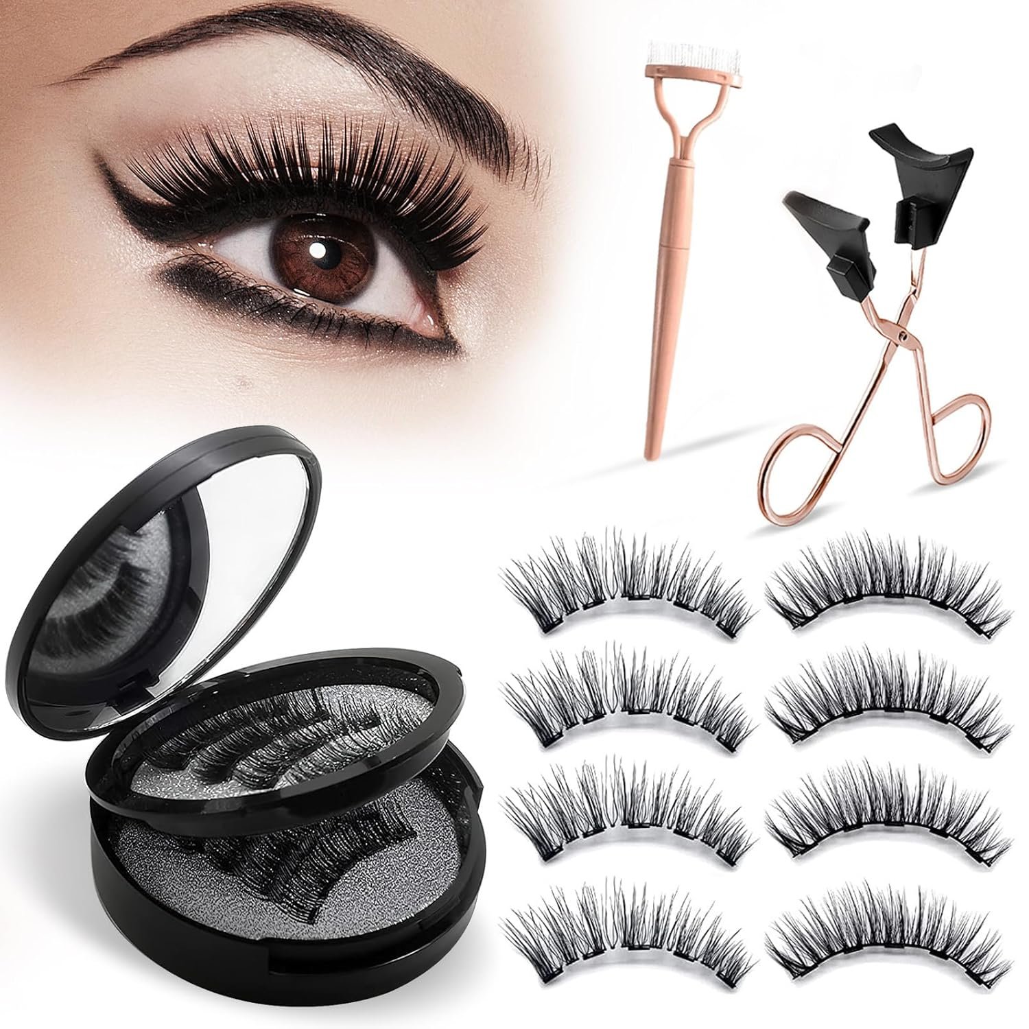 Magnetic Eyelashes, 3D Natural Look Dual Magnetic Lashes Kit with Applicator & Eyelash Comb, Magnetic Eyelashes without Eyeliner, Reusable & Waterproof, 8 Count