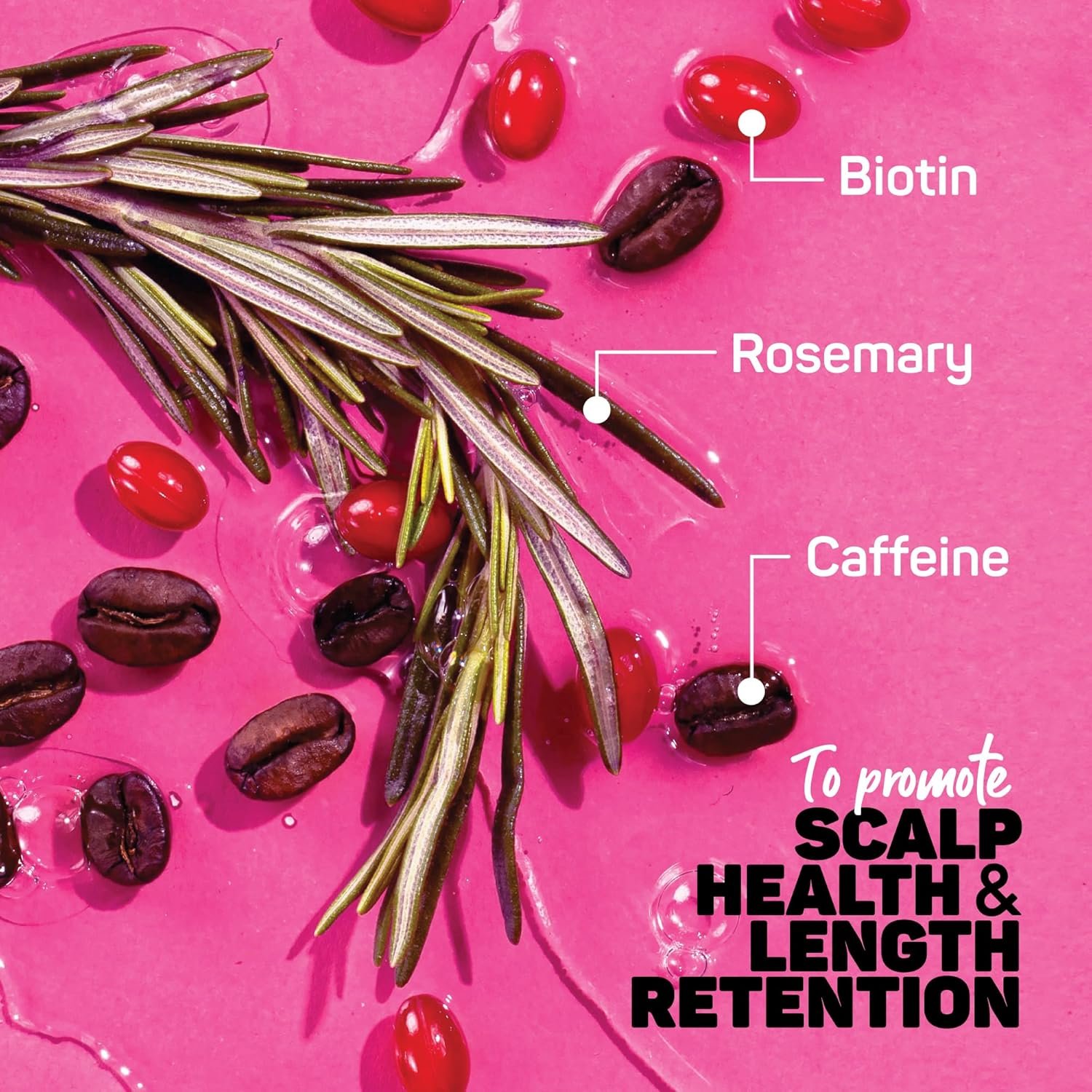 Essential Ingredients: Infused with Rosemary Oil to help strengthen hair follicles and improve scalp health while a conditioning blend of Caffeine, Ginseng, and Biotin helps protect your lengths from future breakage.