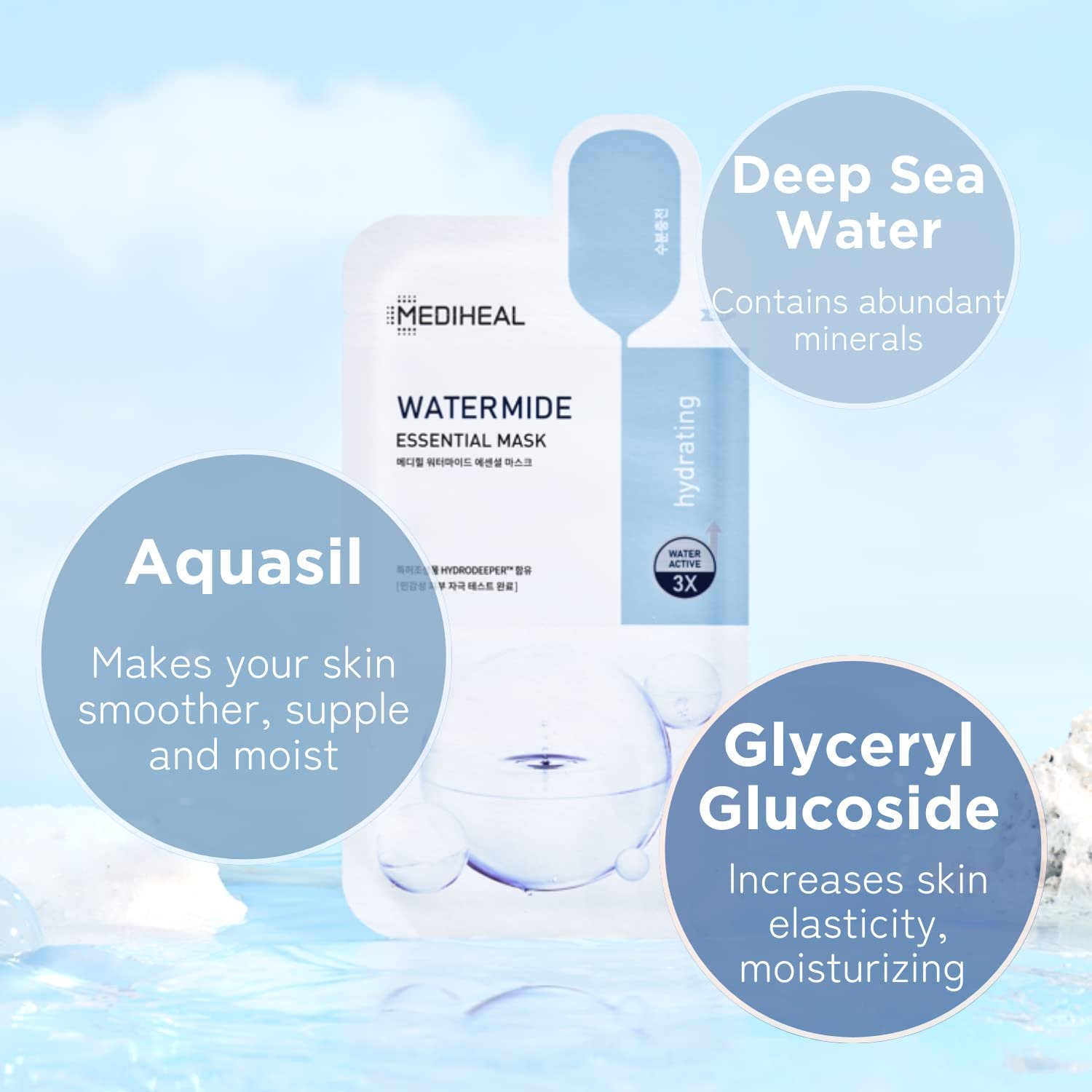 WATER 3X COMPLEX – deeply hydrates and gives skin an instant glow for soft, smooth, de-stressed skin. Deep Sea Water, Aquasil and Glyceryl Glucoside delivers intensive long-lasting hydration to skin so skin looks and feels renewed.