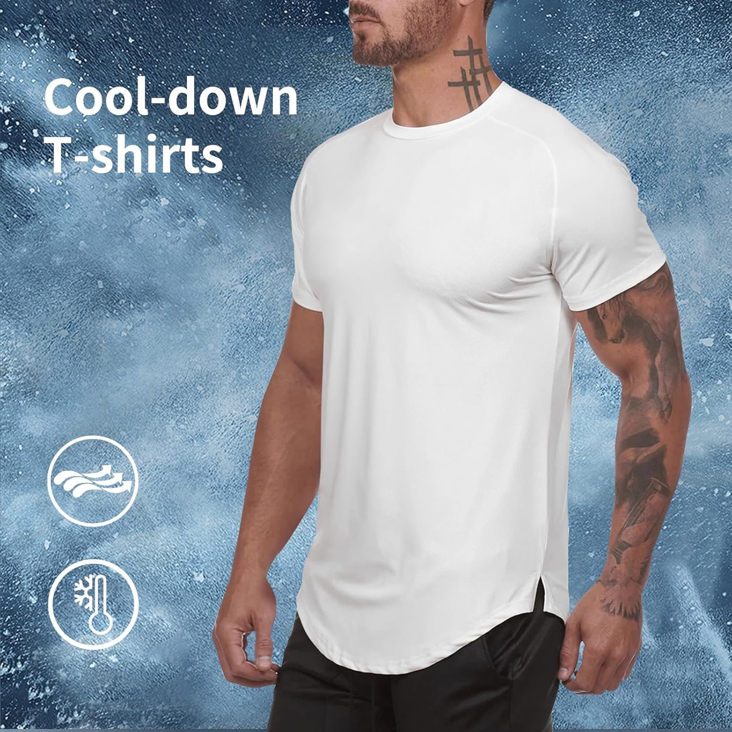 Mens Gym Workout Slim Fit Short Sleeve T-Shirt Cotton Performance Athl…