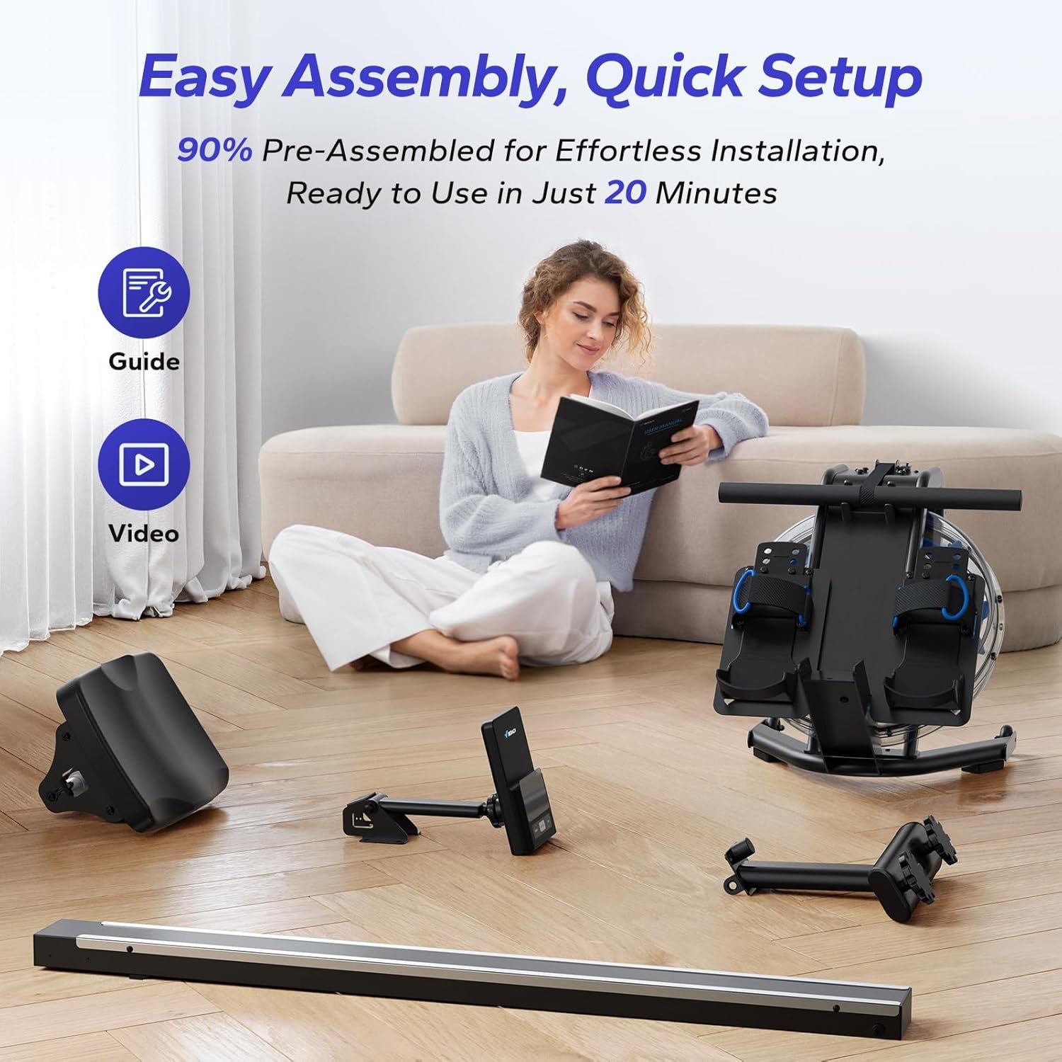 Convenient Water Management: Equipped with an electric water pump for easy water level and resistance adjustment. Water purification tablets effectively maintain water quality, minimizing the need for frequent water changes. Add one tablet after the first water change, then refresh every 3-6 months based on water quality.