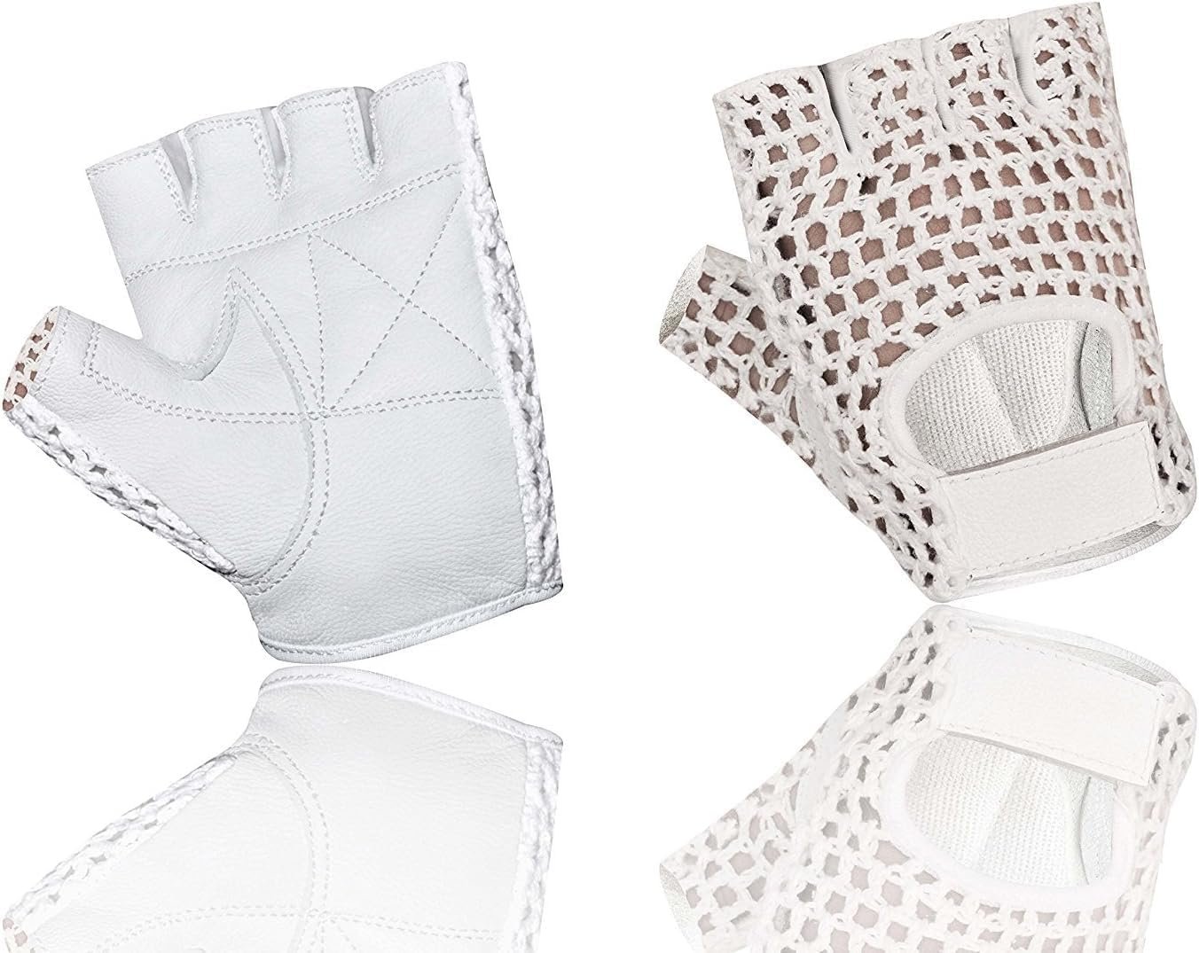 Kango Fitness Leather Padded Crochet Breathable Fingerless Weight Lifting Exercise Gym Wheelchair Gloves in White offer superior grip and protection for your hands during intense workouts. Crafted with premium leather and crochet mesh, these gloves provide ample padding while allowing your palms to breathe. The fingerless design ensures dexterity and freedom of movement, making them ideal for weightlifting, CrossFit, or wheelchair use. With a snug yet flexible fit, these gloves enhance your grip on barbells, dumbbells, and other equipment, preventing slippage and blisters. Lightweight and durable, they offer the perfect balance of support and ventilation, ensuring your hands stay cool and comfortable throughout your fitness routine. Size: W 1061.