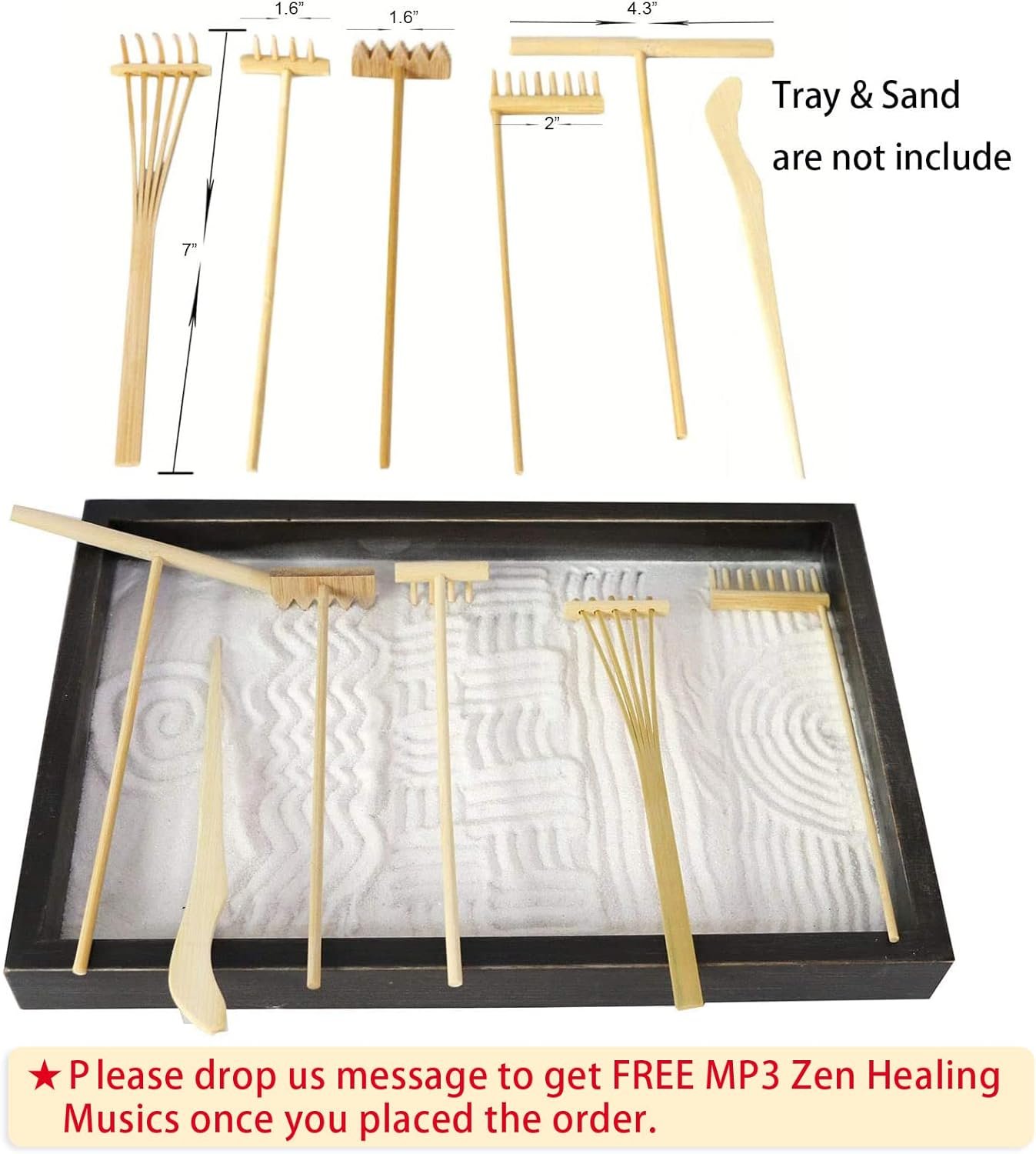 Bamboo Mini Zen Garden Rake Tool Set forDIY Miniature Tabletop Meditation Rock Box Sand Zen Garden Accessories