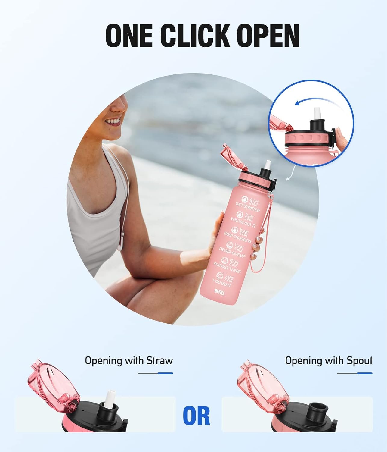 BPA & TOXIN FREE-Crafted from food-grade co-polyester plastic, this 24oz water bottle is a durable and reusable choice for safe, daily hydration. lt boasts an impressive 100% BPA and toxin-free composition, ensuring optimal health and safety for frequent water consumption.