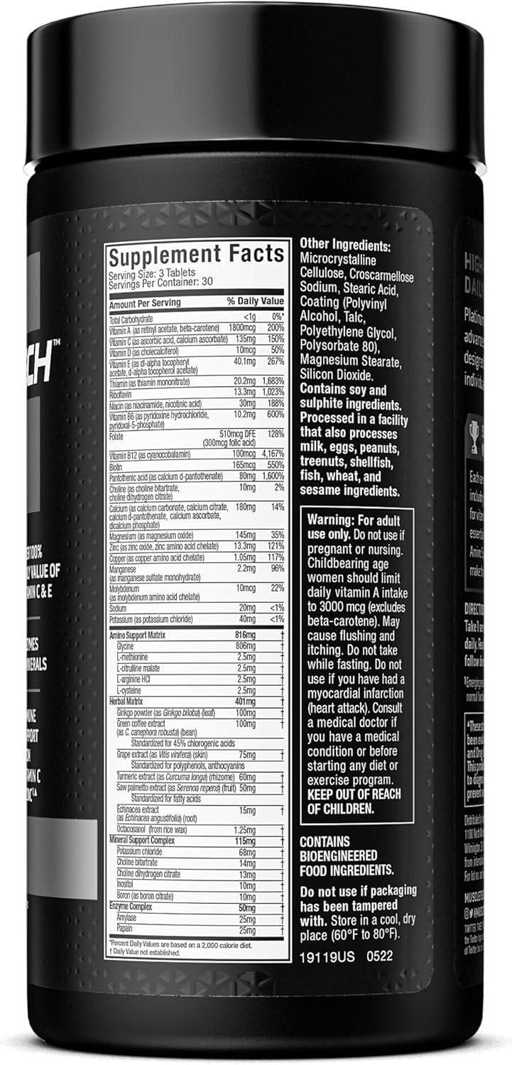 MULTIVITAMIN FOR MEN – MuscleTech Platinum Multivitamin is a complete, advanced multivitamin complex designed for elite athletes and active individuals for general health support