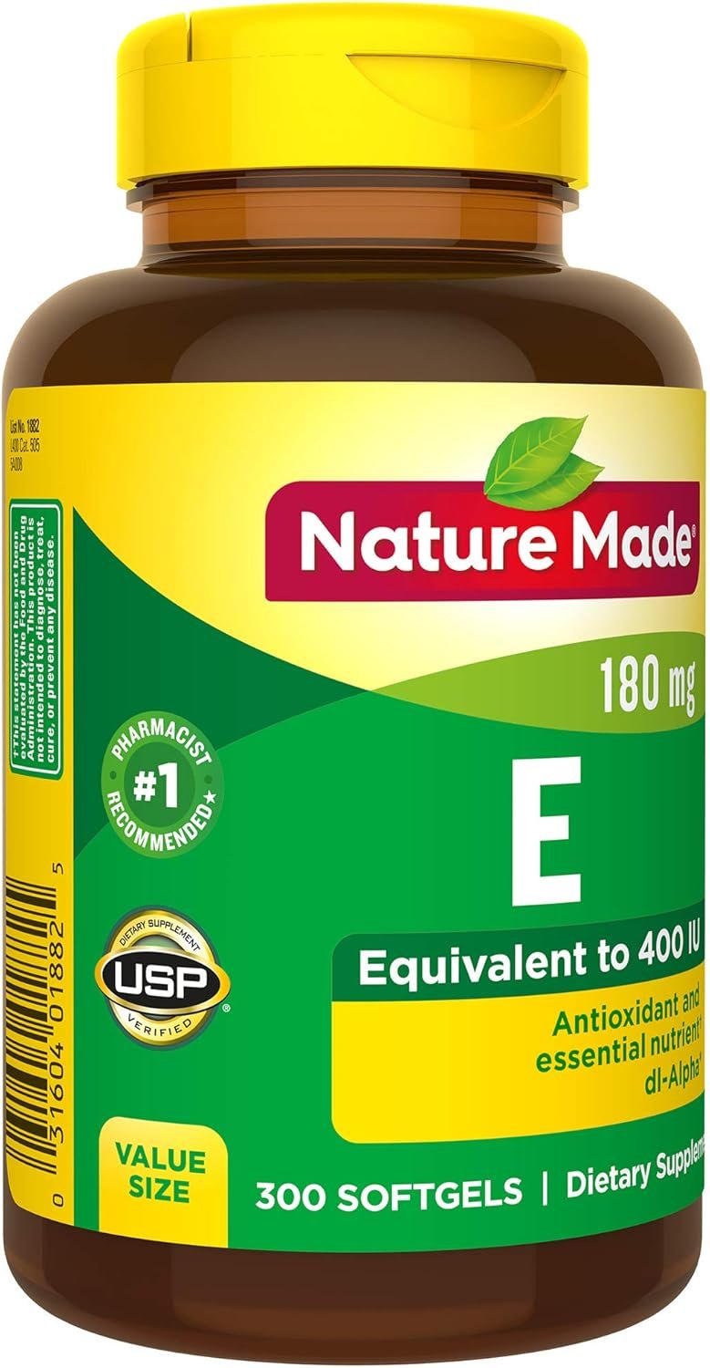 Antioxidant support supplement: contains one 300 count bottle of Nature Made Vitamin E 180 mg (400 IU) dl-Alpha Softgels for a 300-day supply