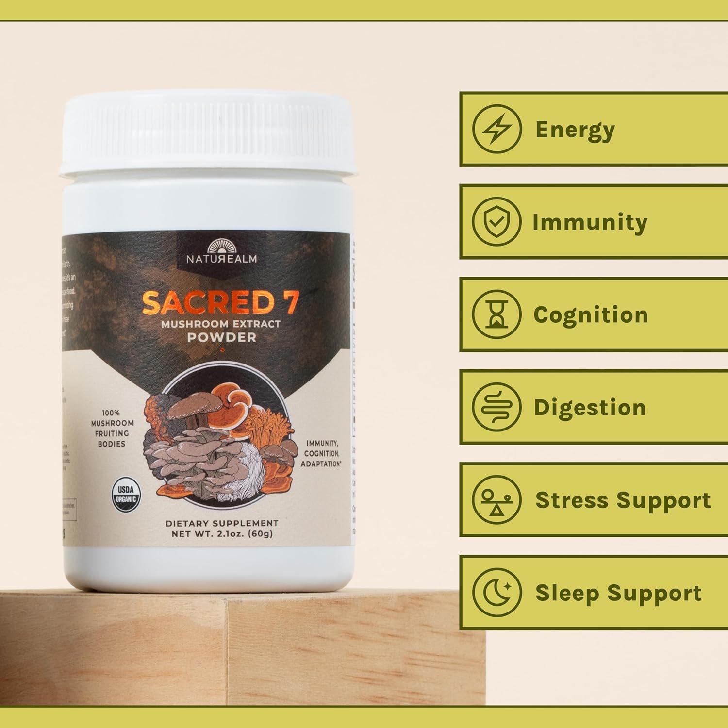 ENHANCE PHYSICAL PERFORMANCE: Enjoy greater physical endurance and lower fatigue with Sacred 7. Unlike traditional pre-workout supplements, Cordyceps, Reishi, and Shiitake have been known to lead to many health benefits, and increase the body’s production of energy, making high-intensity workouts and weightlifting easier.