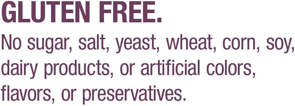 Gluten-free and vegetarian. Contains no salt, yeast-derived ingredients, wheat, soy, corn, dairy products, artificial colors, flavors or preservatives.