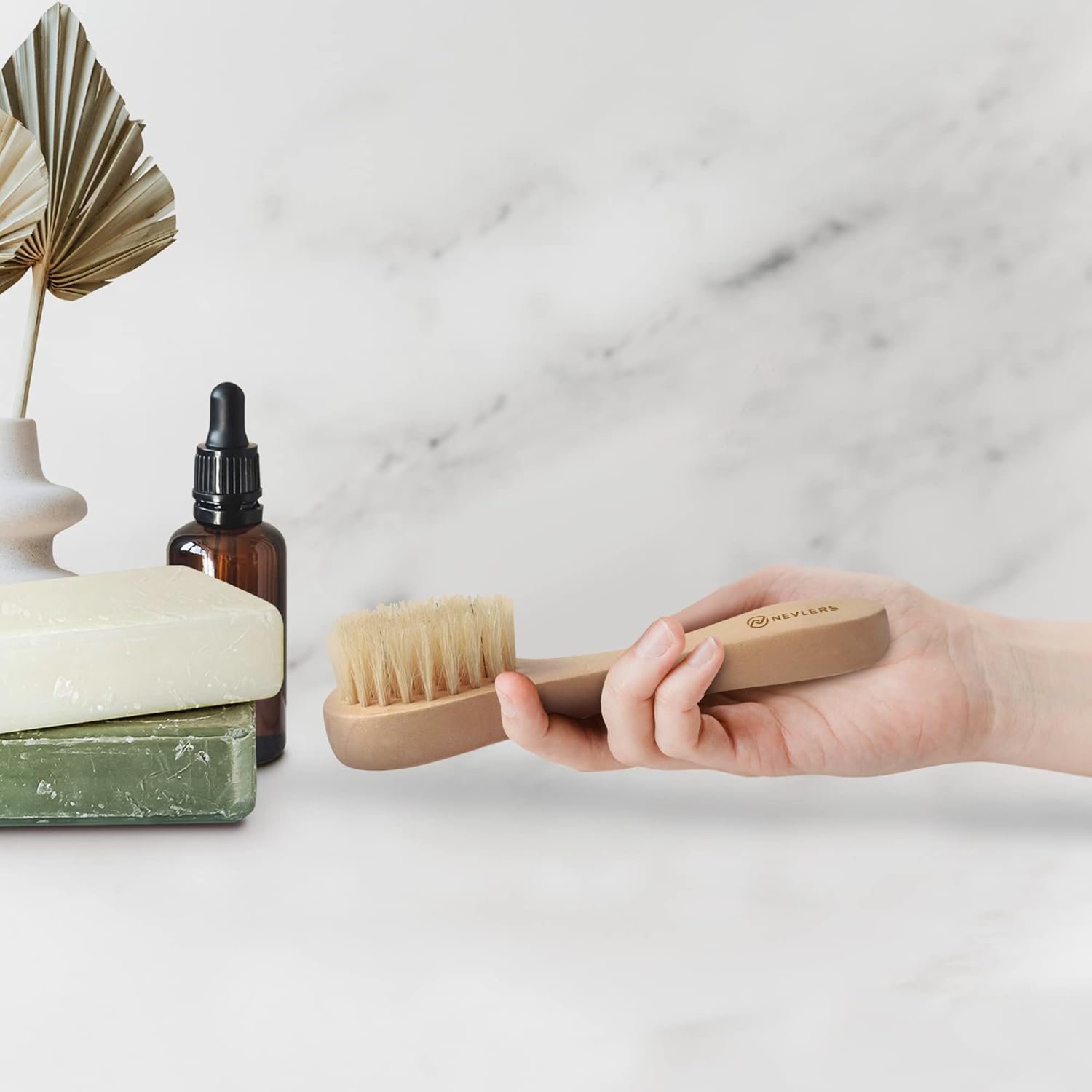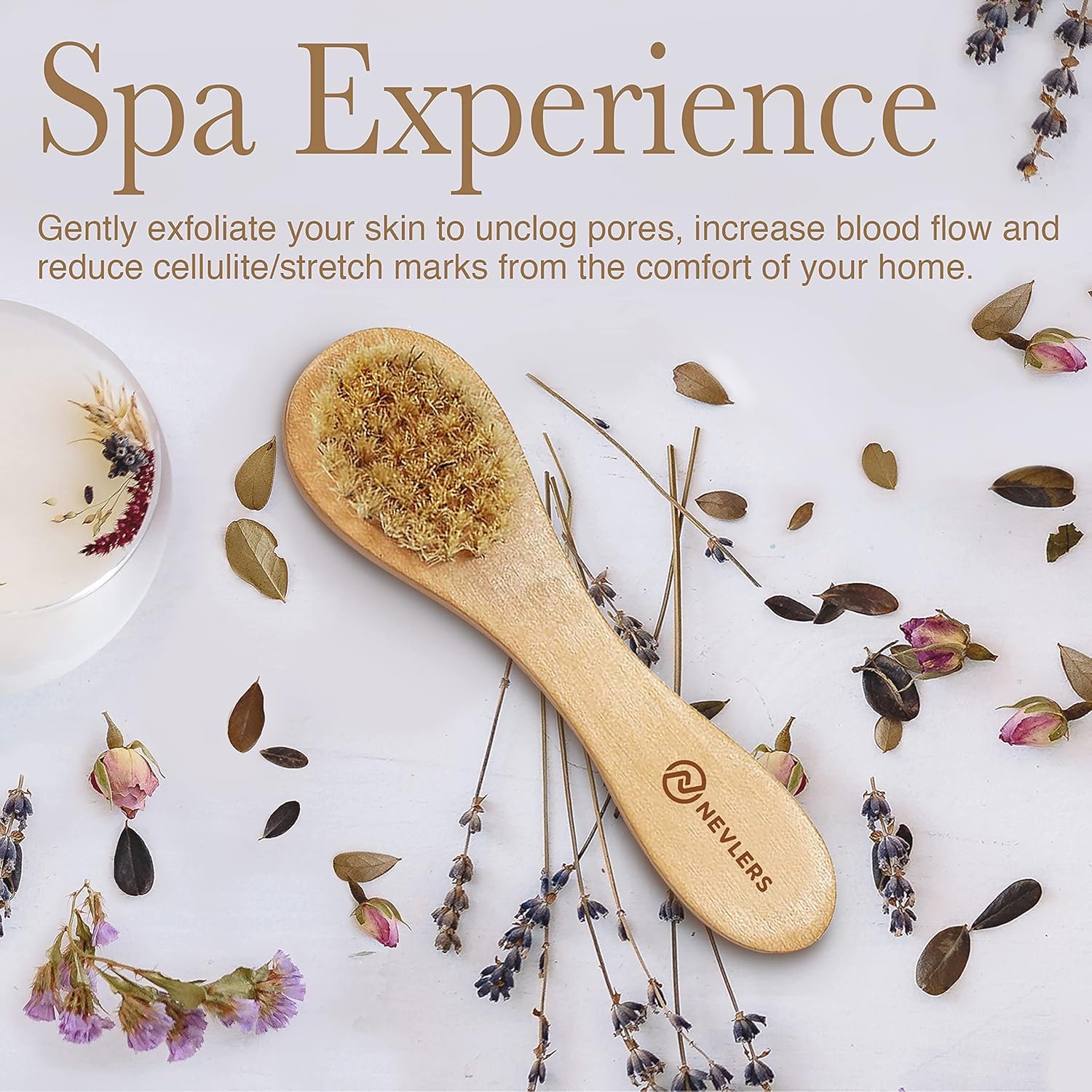 Rejuvenate and exfoliate your skin with the 100% natural Nevlers Boar Bristle Dry Brush Set. The scrub brush and exfoliating brush can be used as a back scrubber, bath sponge, Shower brush and body scrubber.