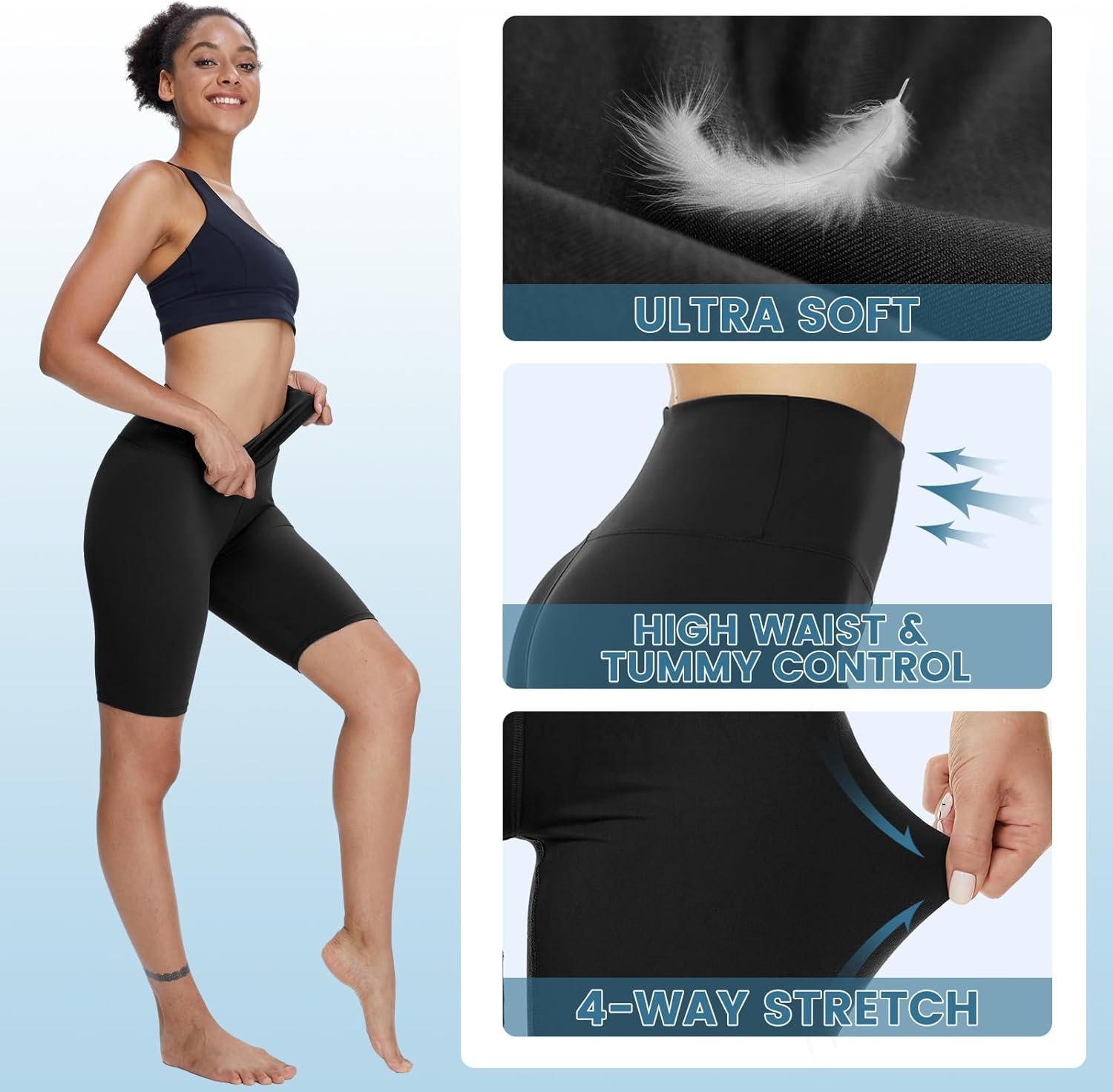 Customers find the shorts comfortable and stretchy. They like the soft fabric, good fit, and length. Some are happy with the sheerness. However, some have mixed opinions on the fabric thickness, material quality, rollability, and see-through.