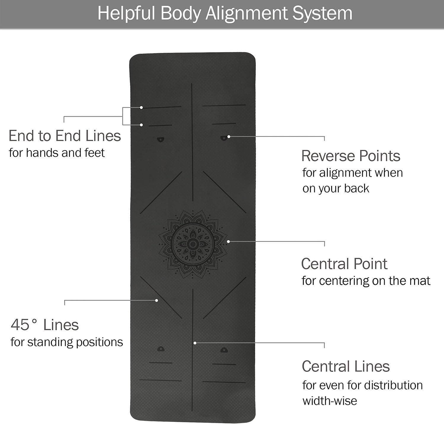 ALIGNMENT GUIDE – This yoga mat features a detailed alignment guide for proper hand and foot placement during a variety of poses—perfect for beginners and more experienced yogis during home workouts.