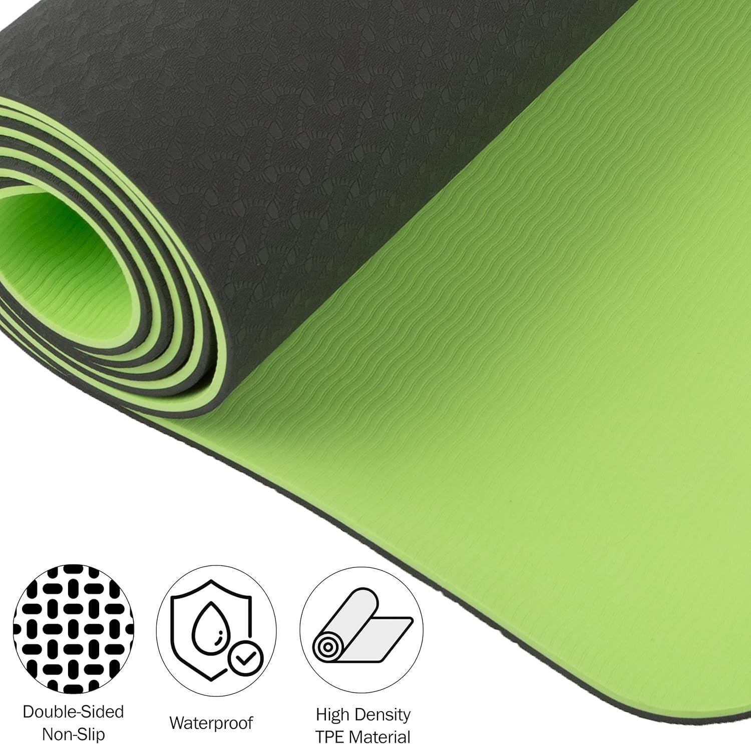 DURABLE AND EASY TO CLEAN – These exercise mats are constructed of tear-resistant, high density TPE so they can be part of your healthy routine for a long time to come. The waterproof mat won’t absorb sweat or spills and wipes clean with ease.
