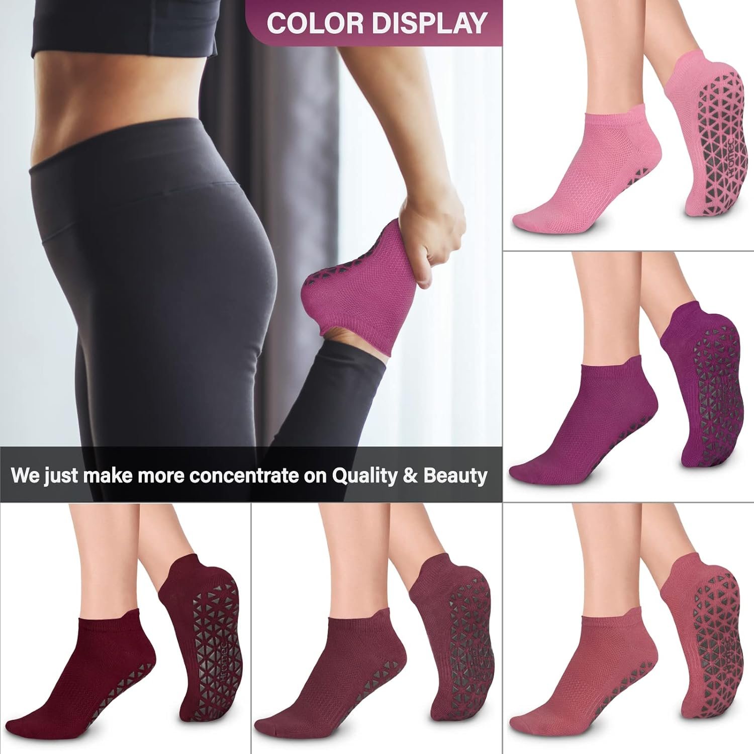 Customers like the comfort and color variety of the socks. They mention they’re soft on the ankle area, hug the floor just right, and firm without pinching or cutting off circulation. Some appreciate that they work well and are value for money. However, some customers have issues with the material thickness and mixed opinions on the fit, grip, and quality.