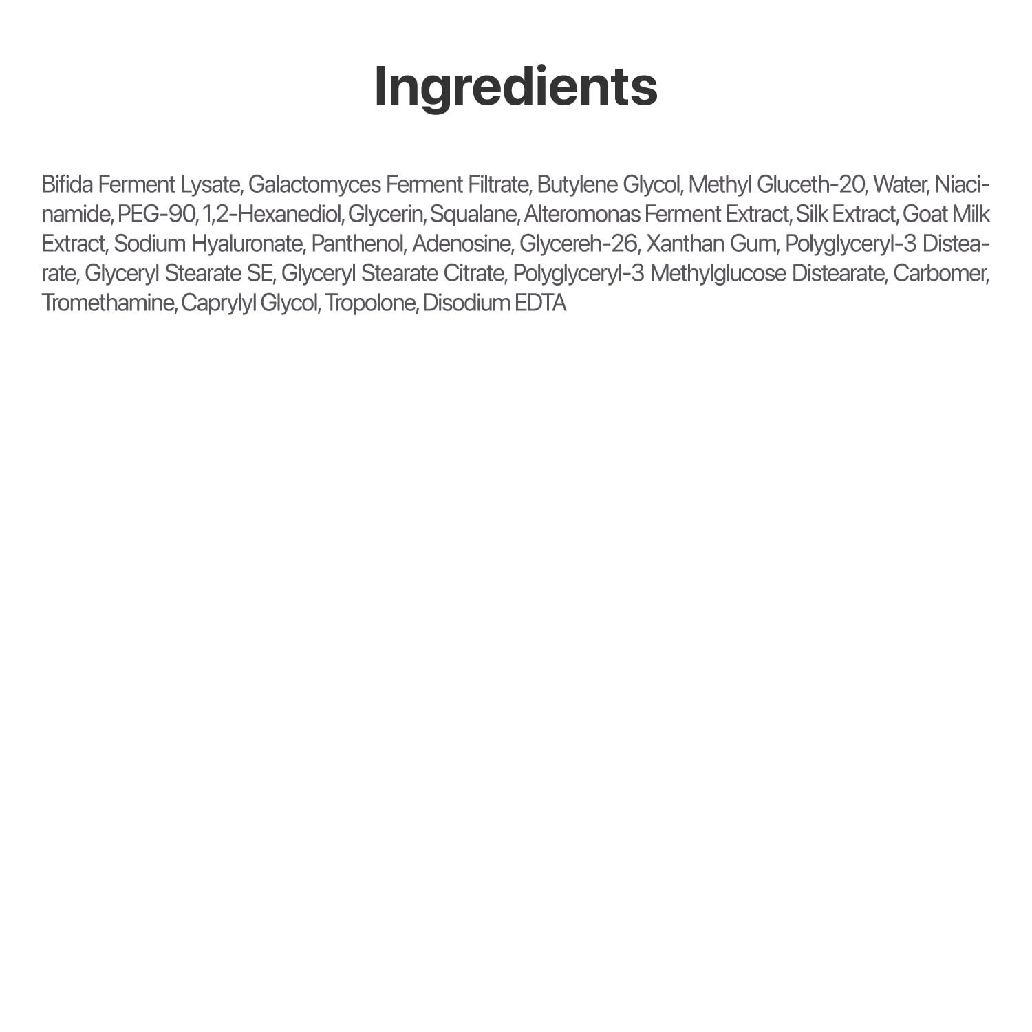 [FERMENTED INGREDIENTS FOR SMOOTHER SKIN] Powered by Bifida Ferment Lysate & Galactomyces to help refine uneven skin texture and support a softer, healthier-looking complexion.