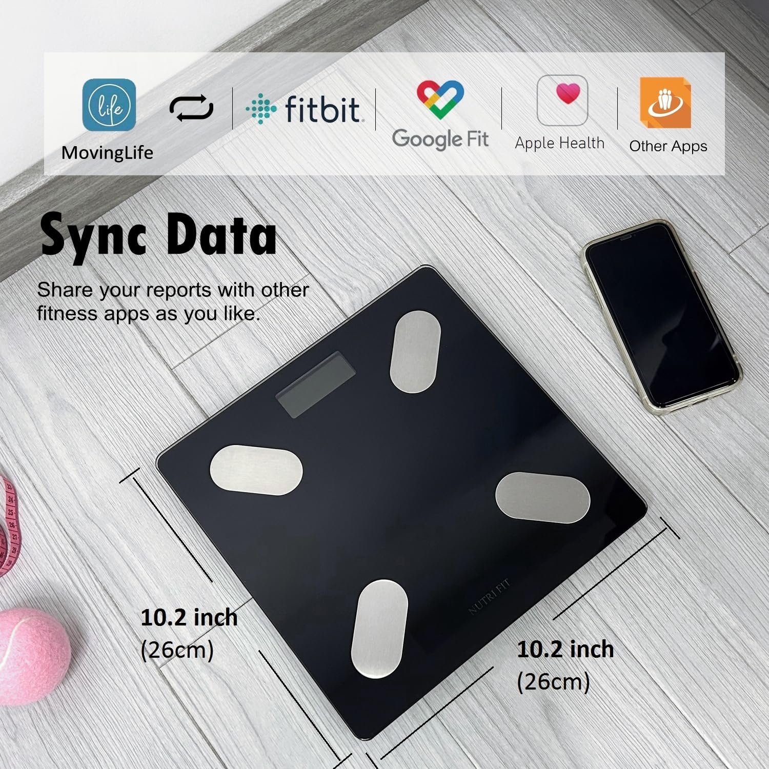 【Sync Weight Data to Other APP】Use the MovingLife APP to sync your data with Apple Health, Google Fit or other fitness apps to view trends and track progress in one central location. Support the system for Bluetooth 4.0, android 4.3 & IOS 8.0 or above.