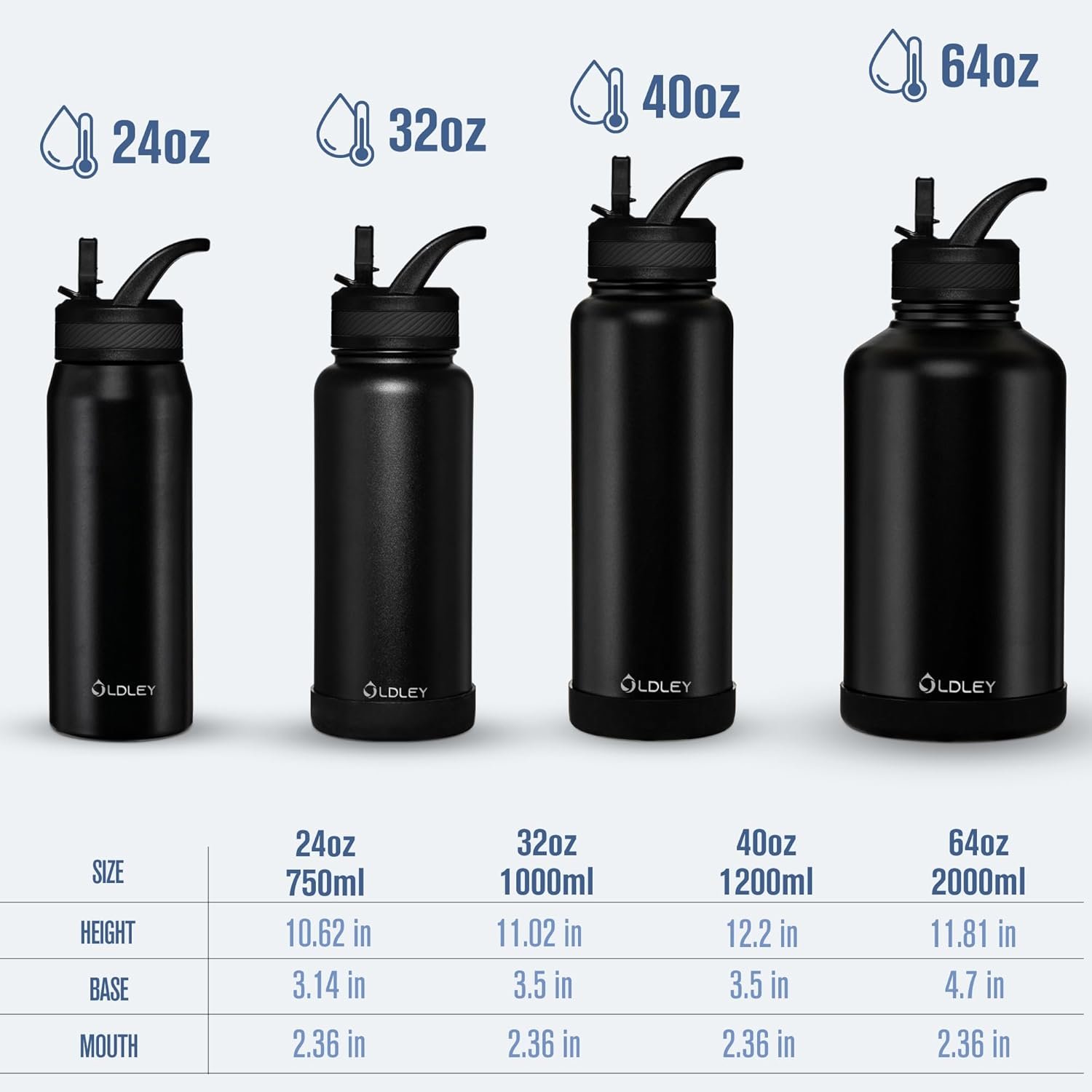 INSULATED WATER BOTTLE: OLDLEY metal water bottle insulation maintains drinks cold for up to 24 hours and hot for up to 12 hours. Vacuum insulation ensures superior temperature retention, keeping drinks cold for hours, ideal for outdoor events or traveling.