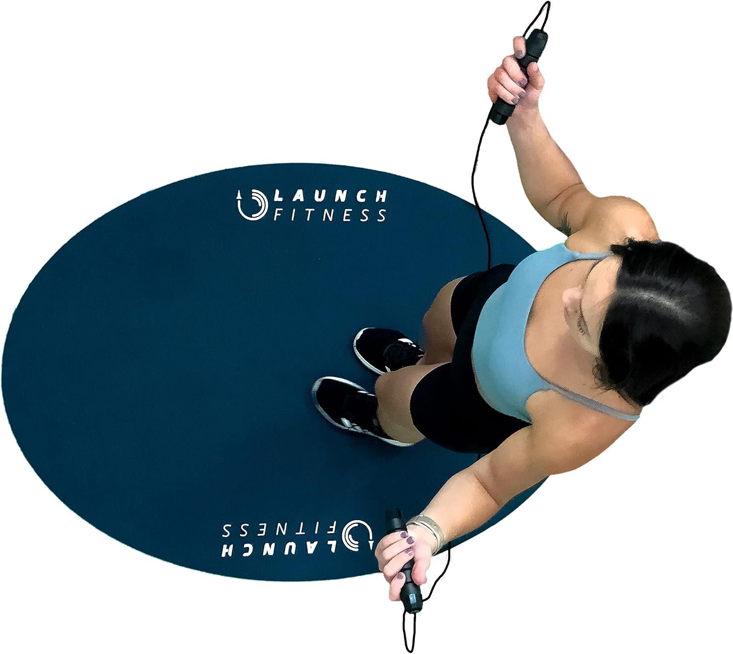 CUSTOM OVAL SHAPE: The oval shape is great for jumping rope and makes for easier travel when on the go. When in use, the round design will take up less space in your home or on the gym floor. Also perfect as a indoor cycling mat, jump workout mat, outdoor padded mat and cross rope mat.