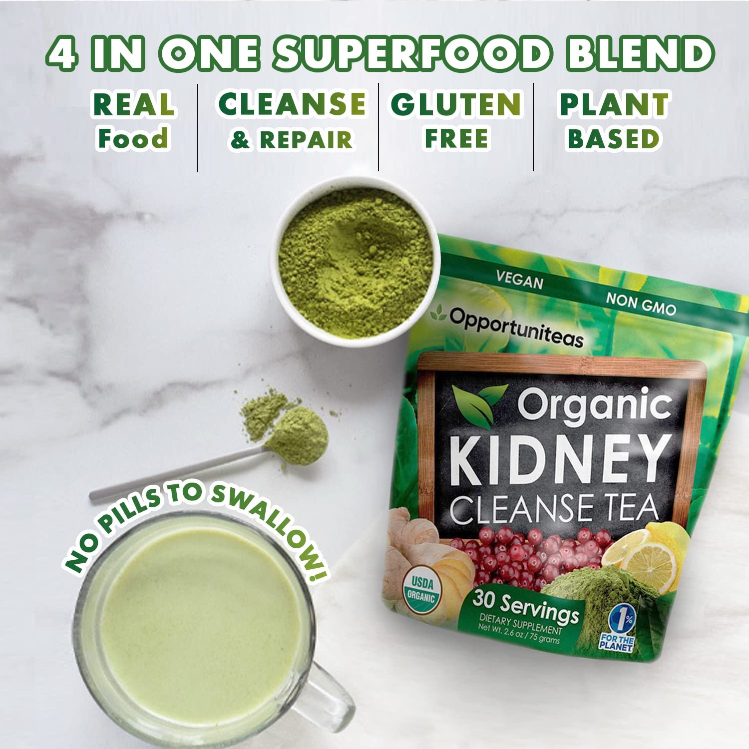 NO PILLS TO SWALLOW – If you’re a fitness or health conscious person, you like to cover all the bases. You know you need to sleep well, manage your stress, and eat healthily. But, it’s hard to do it all. It’s easy to put one scoop of kidney detox tea powder in a smoothie, juice, or tea. And you don’t have to swallow any pills to feel better!