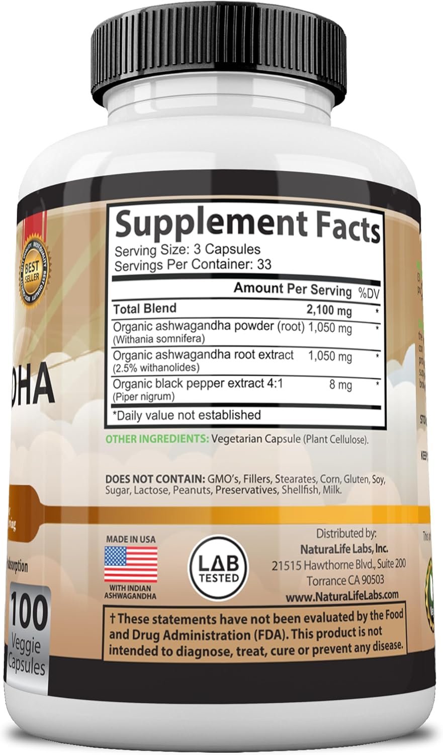 ✔️UNIQUE BLEND Derived from the roots of the Withania somnifera plant, Ashwagandha has been used for centuries as an Ayurvedic. Made with pure organic ashwagandha powder and root extract (2.5% withanolides) blend