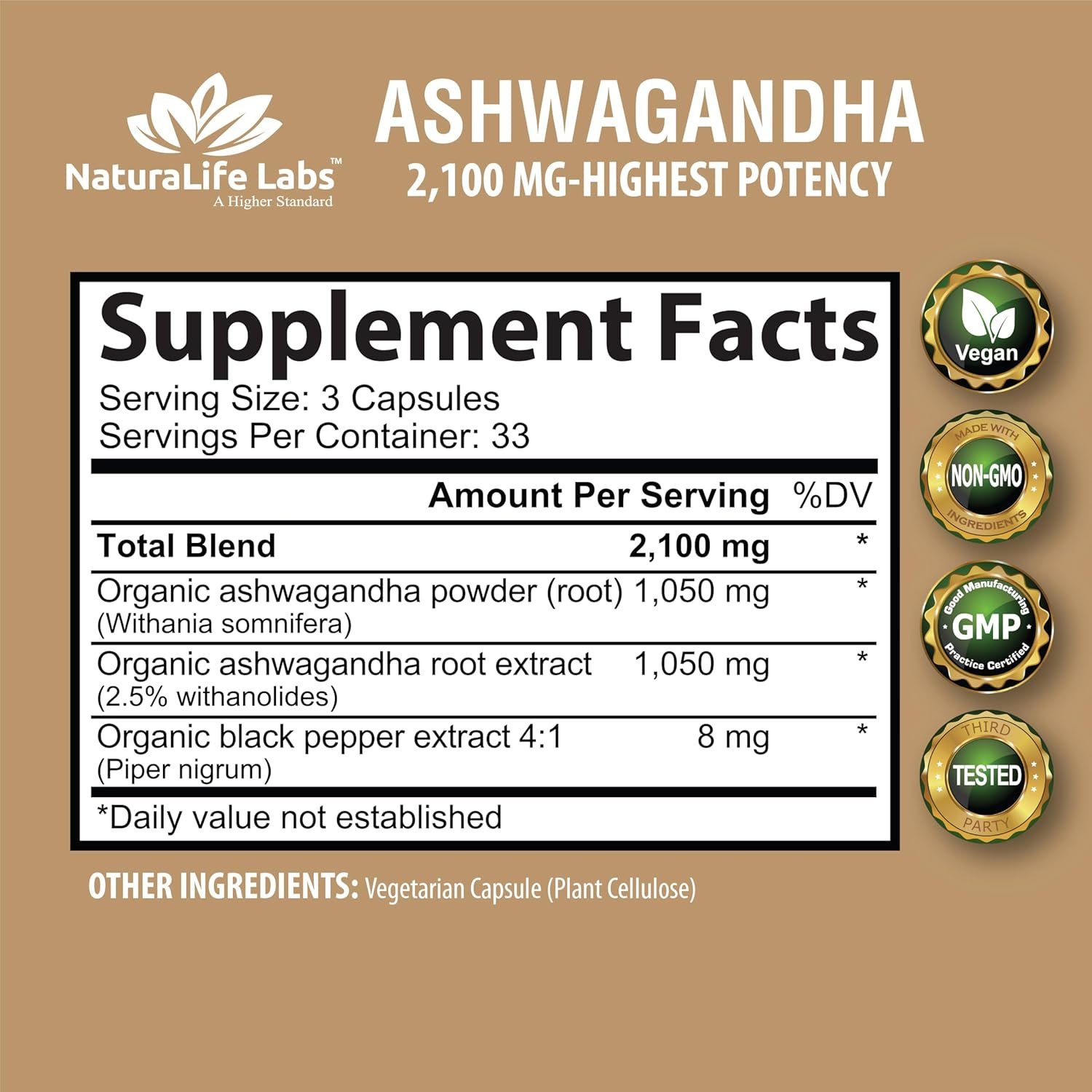 Unveiling the power of Ashwagandha, our blend brings you 2100 mg per serving, a perfect fusion of organic powder and potent extract