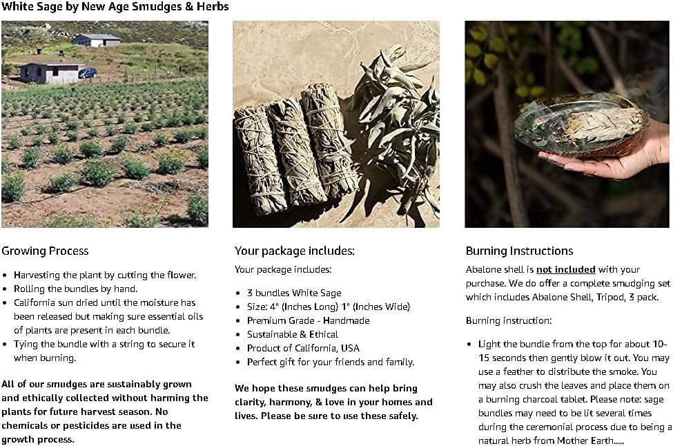 Package Includes 3 White Sage 4 Inch bundles – New Age Smudges & Herbs since 2010.