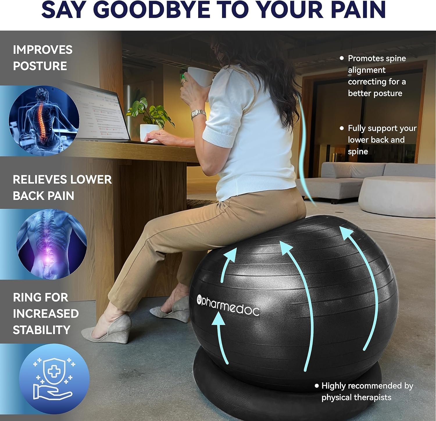 Enhance Balance and Posture: Balance ball chair promotes better posture and core stability, helping to improve balance, strengthen the muscles and relieve back pain.