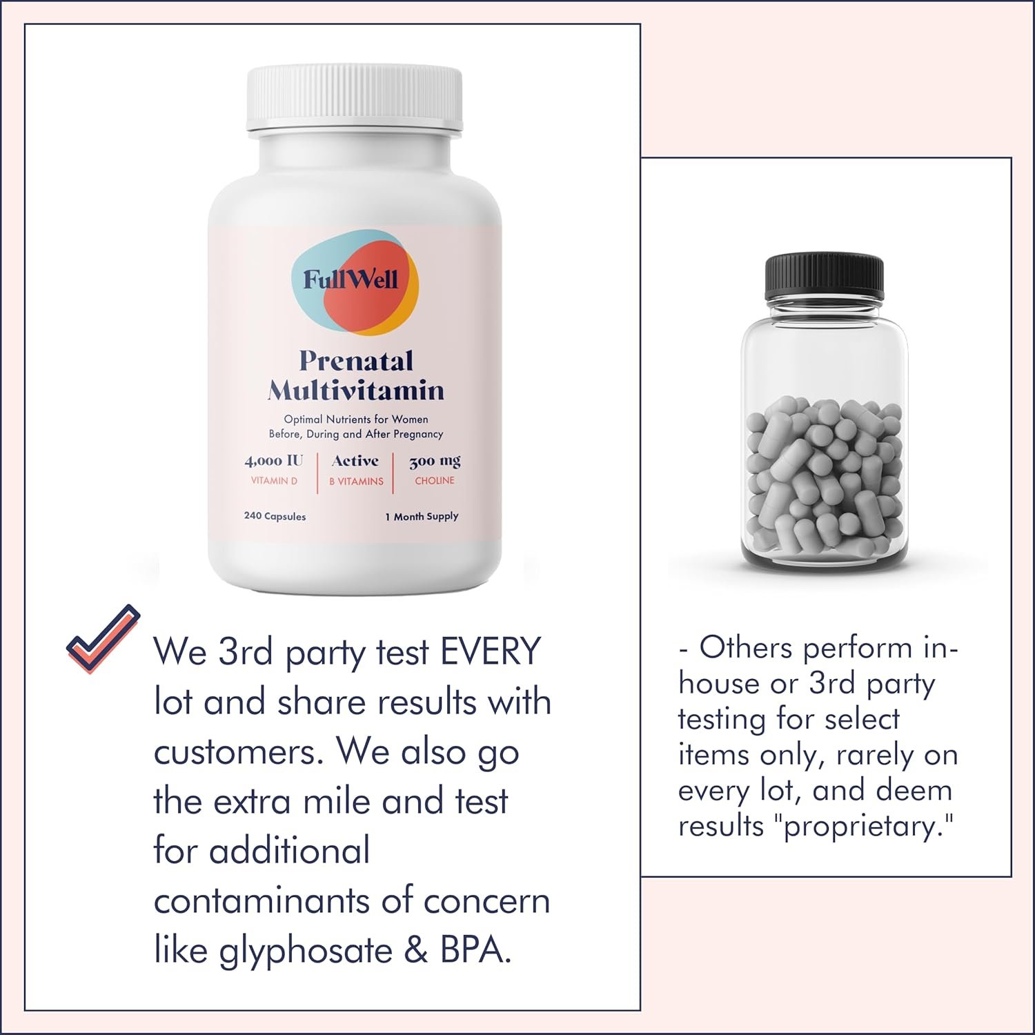 NO COMPROMISING & ALWAYS FRESH: In creating FullWell Prenatal Multivitamin, we aimed to make a well-tolerated, bioavailable multivitamin without compromising the amounts, forms, or quality of the nutrients that help support fertility and long term overall health. The Manufacture Date (MFG) represents when the product was made & helps assess freshness.