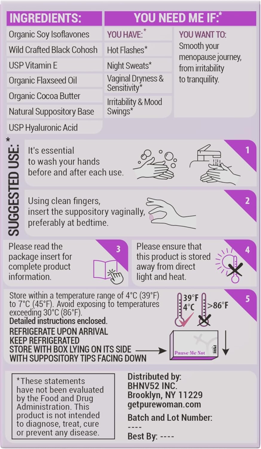 Safe and Effective: Menopausal vaginal suppositories are made for women who are experiencing early signs of menopause & for those who are going thru menopause. To help transition smoothly and comfortably. Addresses both hormonal and physical symptoms of menopause, particularly the dryness and discomfort so often overlooked in menopause care.