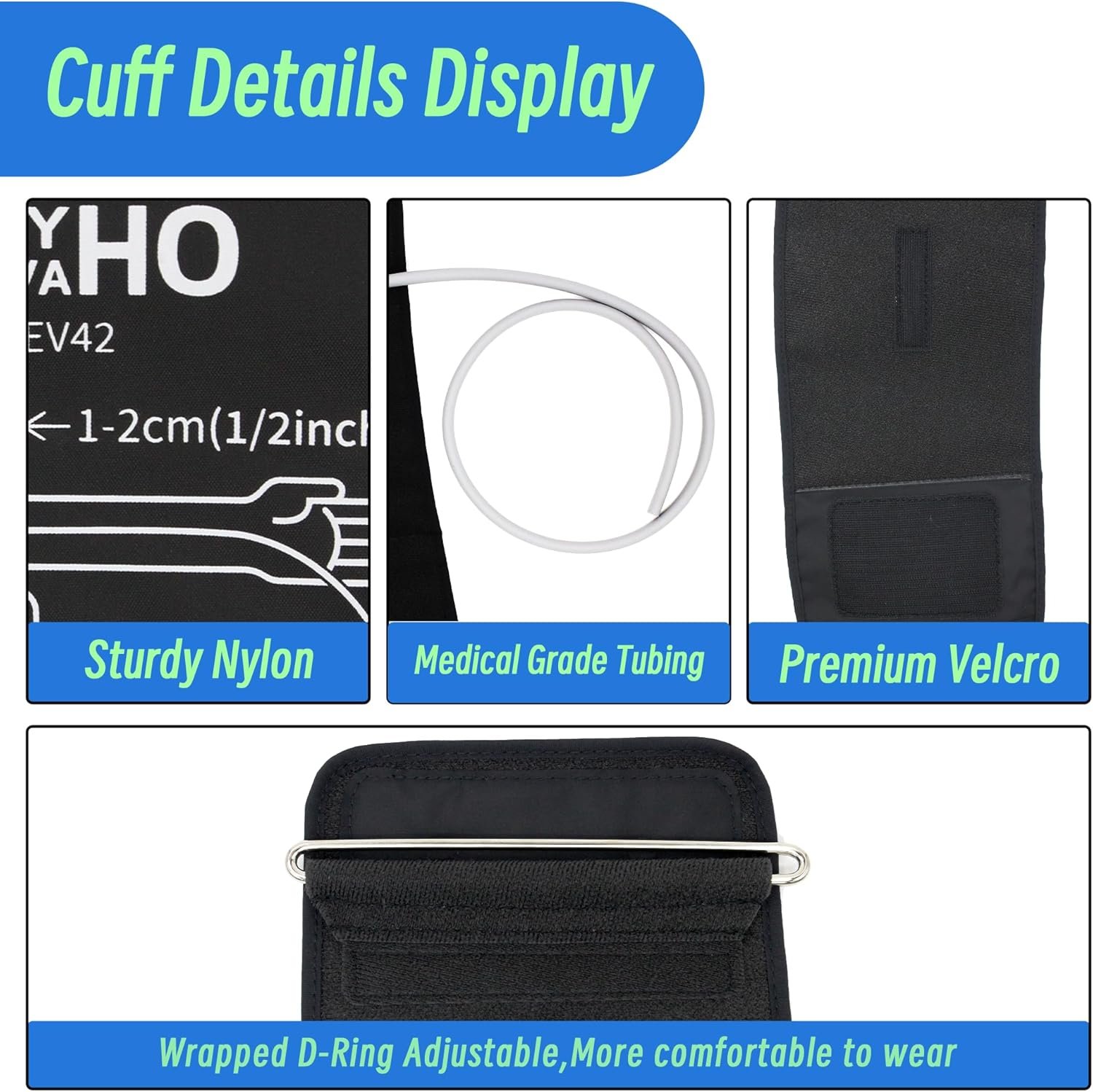【Durable Material】The blood pressure cuff is made of high-quality nylon cuff fabric and non-toxic and odorless TPU airbag. Nylon soft hook Velcro will not catch hair. Reusable for more than 10,000 times while staying close to the arm.