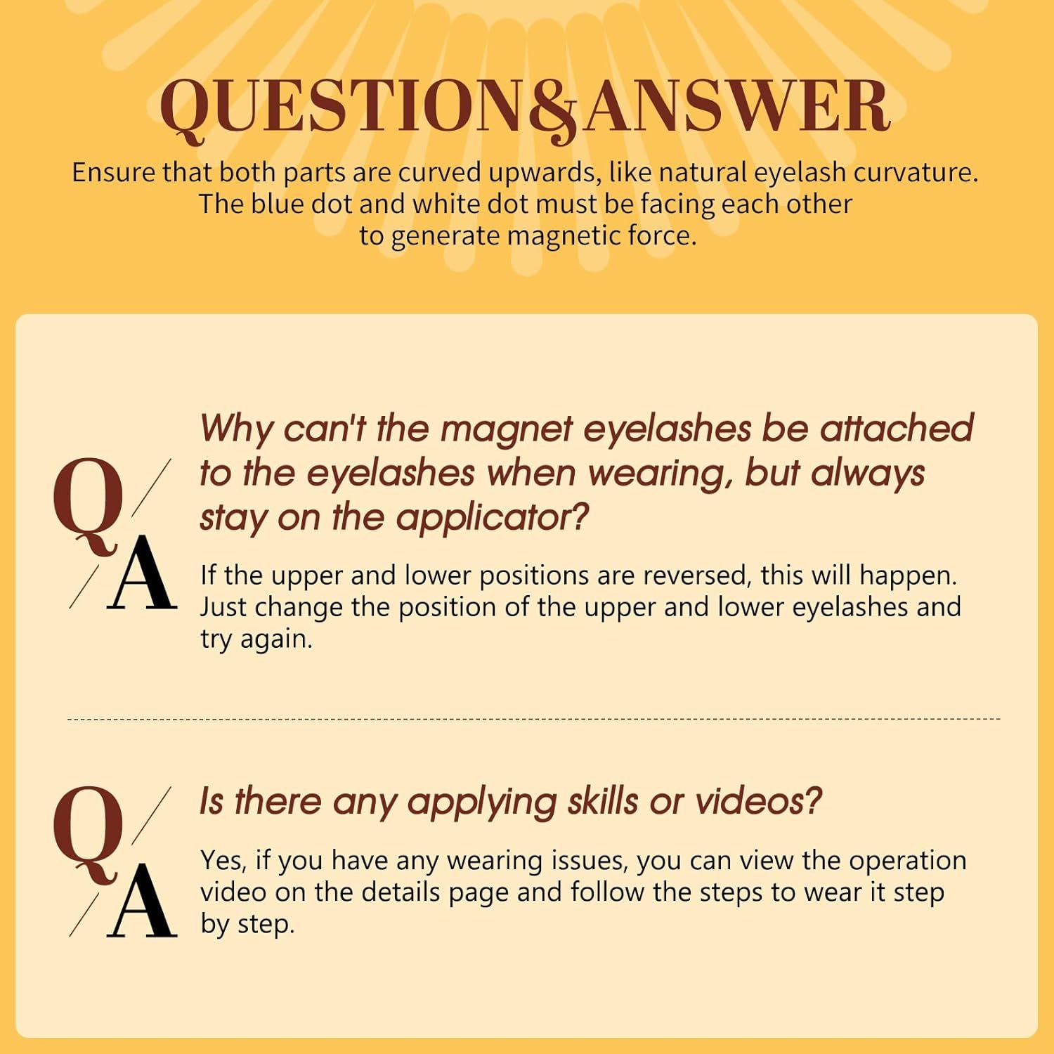 Friendly for Beginners: Our magnetic eyelashes with applicator and instructions, you only need to follow the steps of the instructions. After taking out the magnetic eyelashes, gently separate them from the ends, find the small magnet on the eyelashes, and put the clip on the upper part of the eyelash close to the root of the eyelash, then gently press it to close it, and suck the upper and lower eyelashes together to complete the wearing!