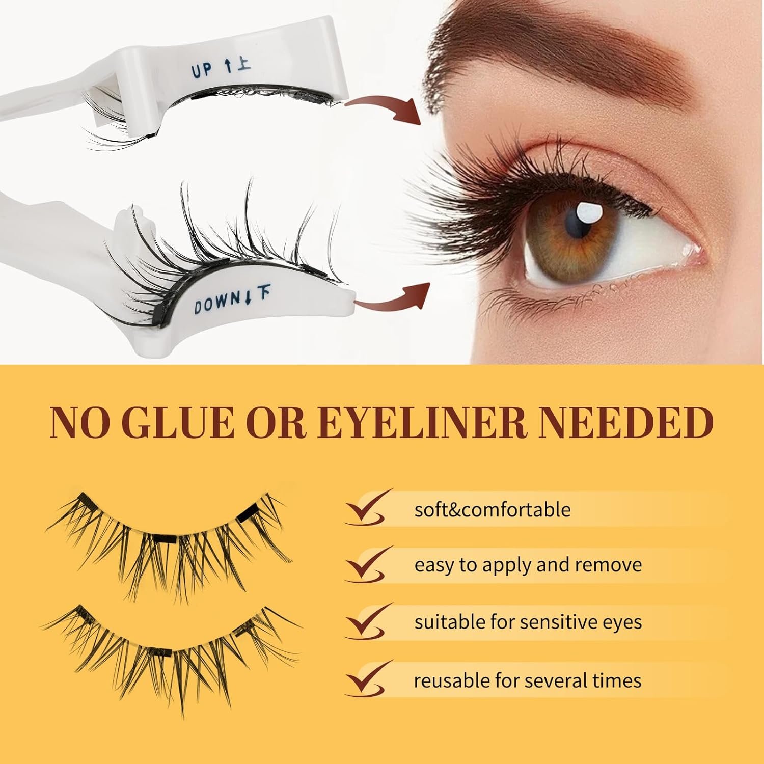 No Glue or Eyeliner Required: Our upgraded magnetic eyelashes technology provides a comfortable wearing experience for people with sensitive eyes. Say goodbye to the mess of glue for beginners with our magnetic eyelashes kit. The magnetic design ensures a secure fit without the need for lash glue, so you don’t have to worry about your eyelashes falling off! The eyelashes magnetic lashes can be easily matched with any cosmetics without eyeliner, specially designed for lazy people!