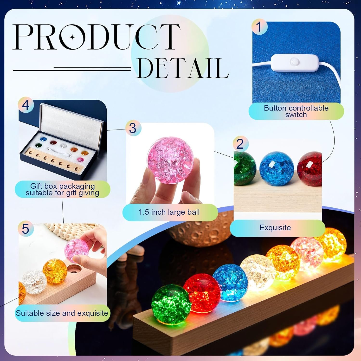 Aid in Meditation and Healing: each crystal ball decor represents an energy center in your body, granting you the power to meditate and heal with more intent; Experience chakra healing like never before with these dynamic meditation tools