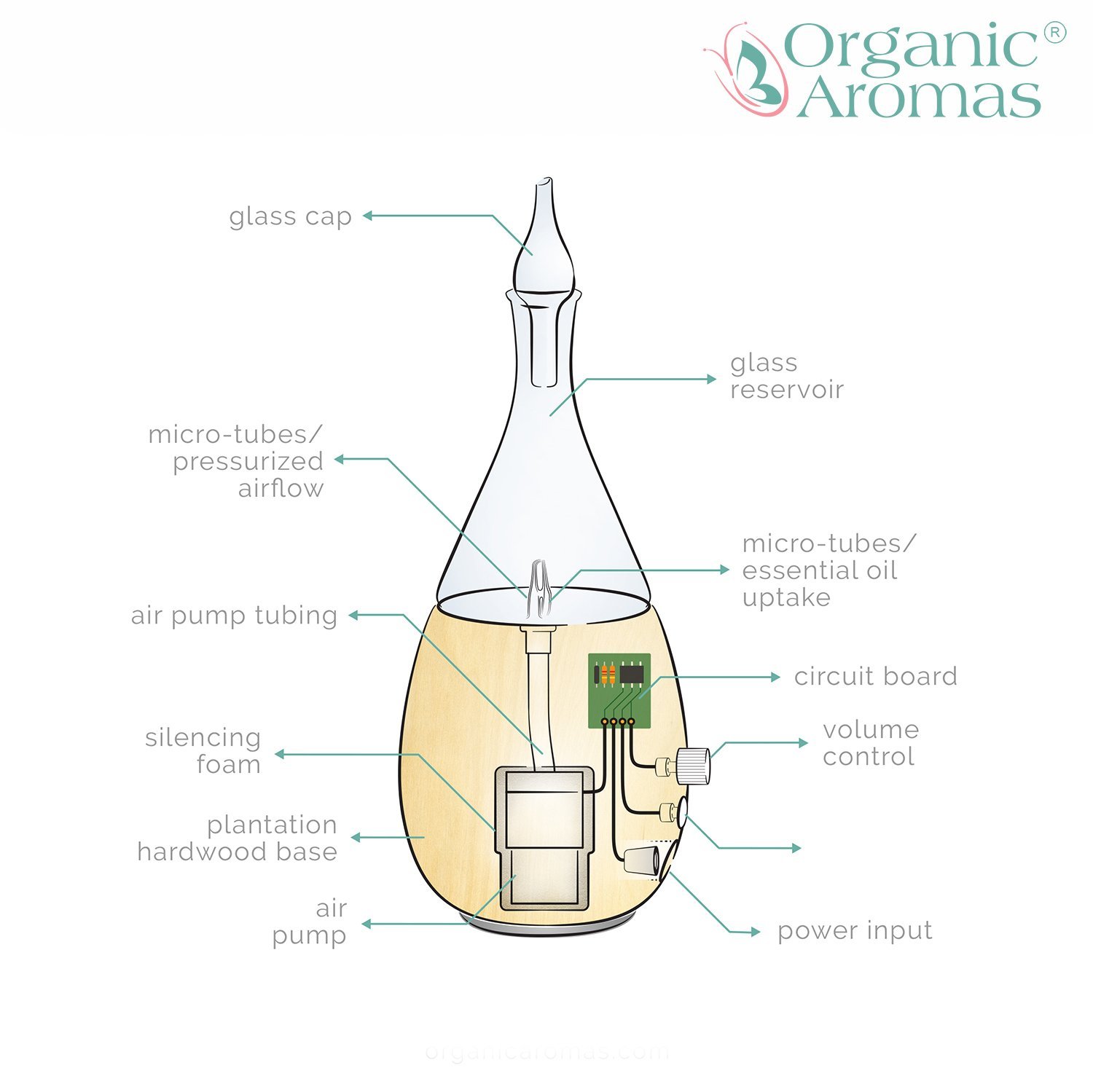 Organic Aromas backs its Nebulizing Diffusers with a ONE YEAR FREE warranty on parts and labor. If you ever have any problem or question, please let us know. We will take care of it!