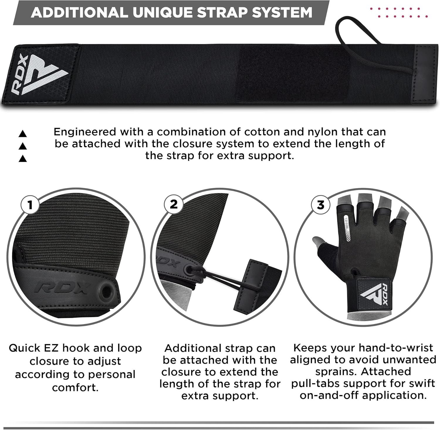 ✅ UNIQUE HYBRID STRAP – These RDX workout training gloves come with a uniquely designed detachable hybrid strap. With the shorter strap, the users can keep an eye on their smartwatches or other wrist accessories during their workouts, while the additional 34 cm long strap can be attached to the workout gloves for men when working with heavier weights where more wrist support is needed.