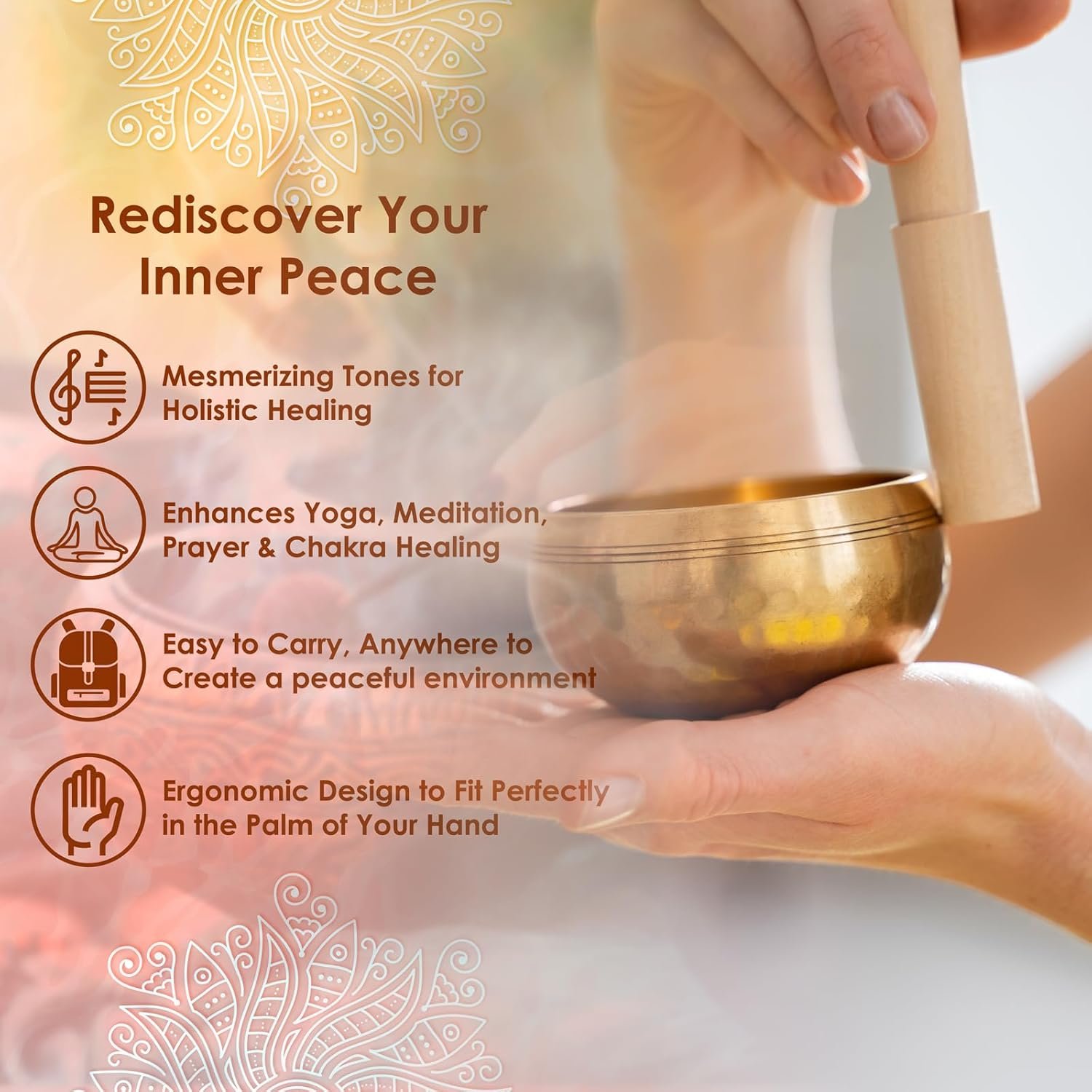 ♫ PORTABLE SOUND BOWL FOR ON-THE-GO SERENITY — This compact 3″ sound bowl set is designed for ultimate portability, fitting comfortably in your hand and accompanying you to yoga classes, the office, or retreats. Despite its small size, it delivers rich, layered tones for an immersive sound experience.