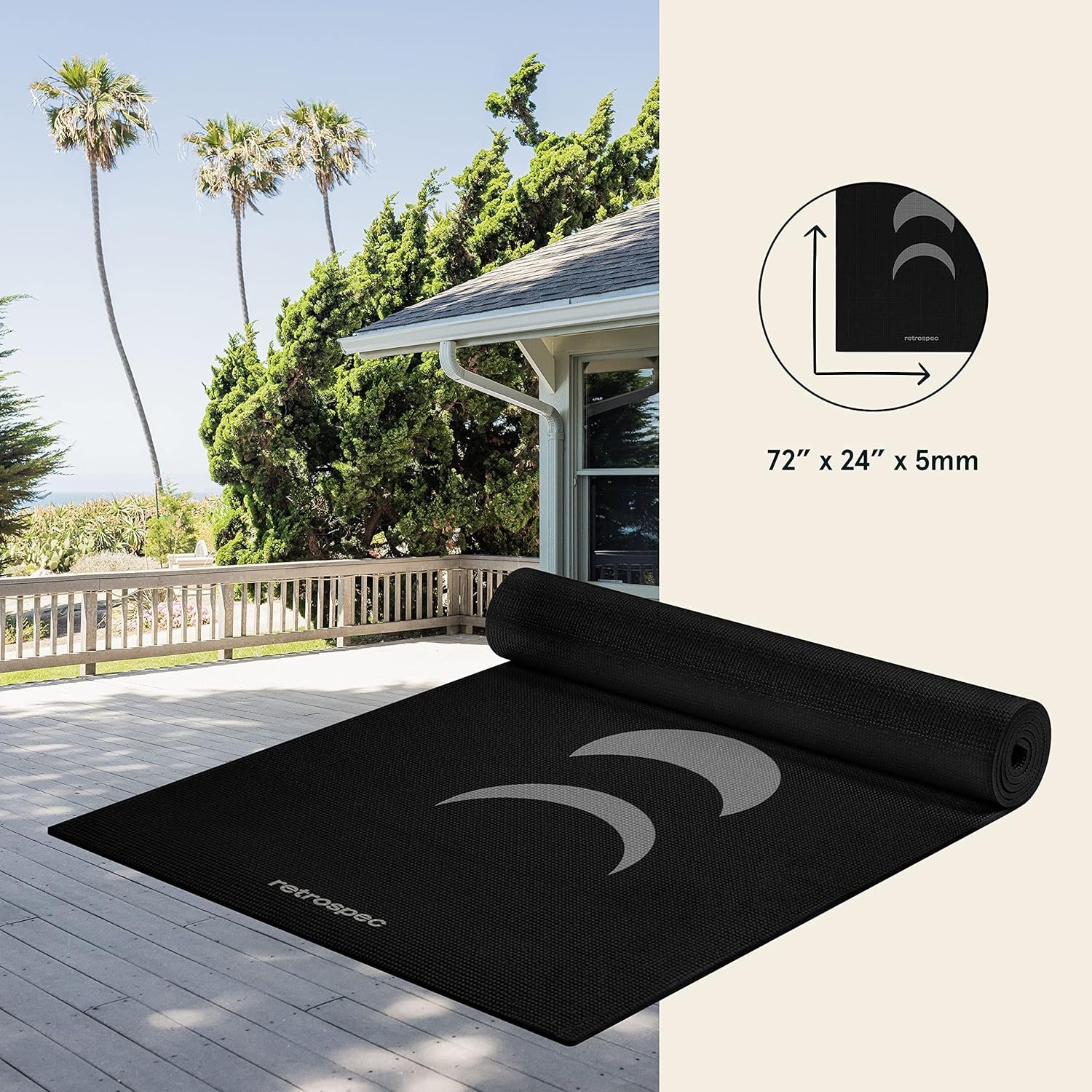 ALL-AROUND EXERCISE MAT: Retrospec Pismo Yoga Mat is longer and thicker than traditional yoga mats, providing extra room and space for added security as you move through your flow. Measures 72” x 24” x .5mm and rolls into compact cylinder for easy travel.
