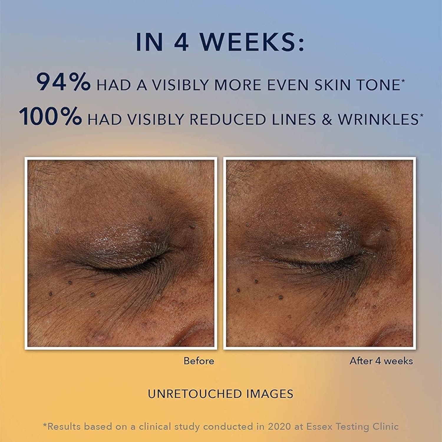 PROVEN RESULTS: Experience clinically proven benefits. Instantly, skin is visibly radiant. In 1 week, skin looks brighter & texture is visibly improved. In 4 weeks, skin appears tighter, discoloration is visibly reduced, & elasticity appears restored.