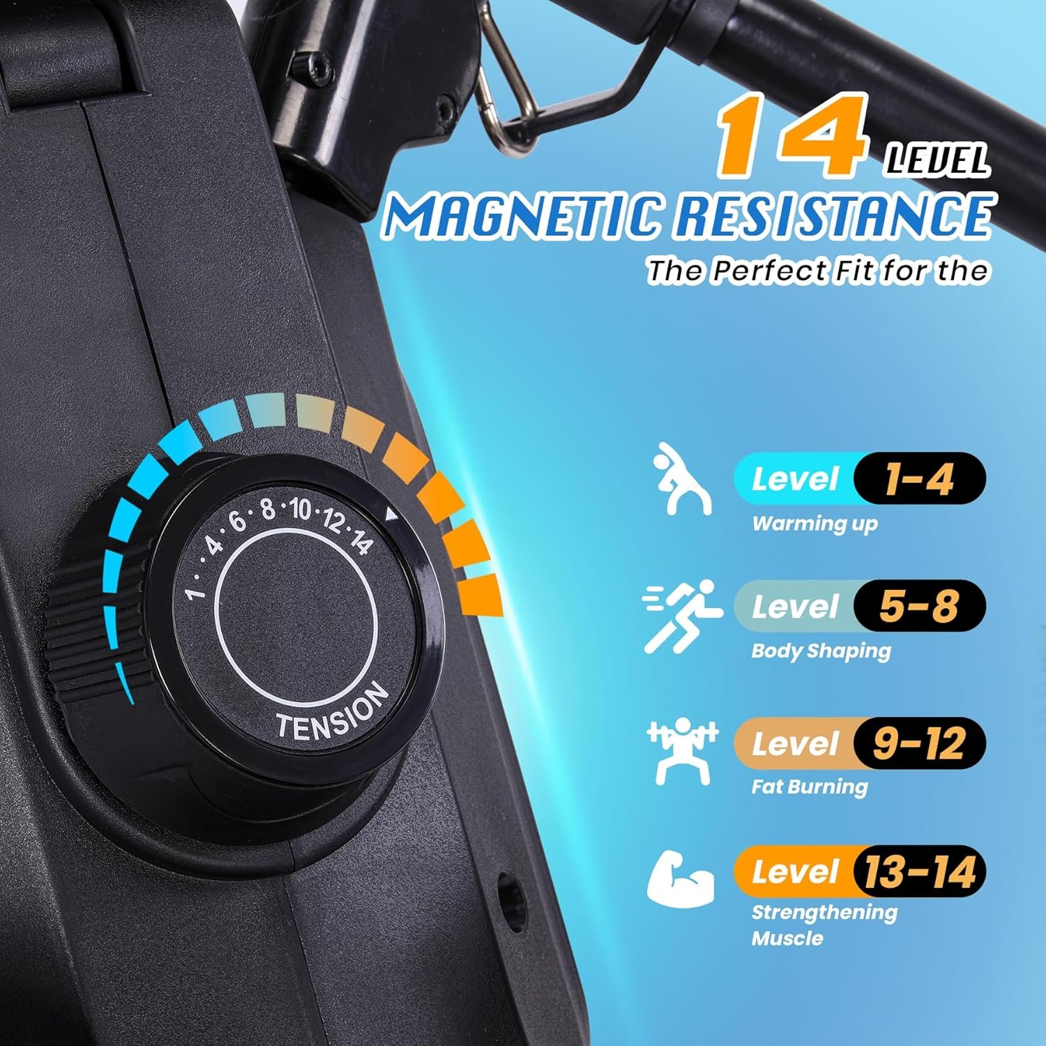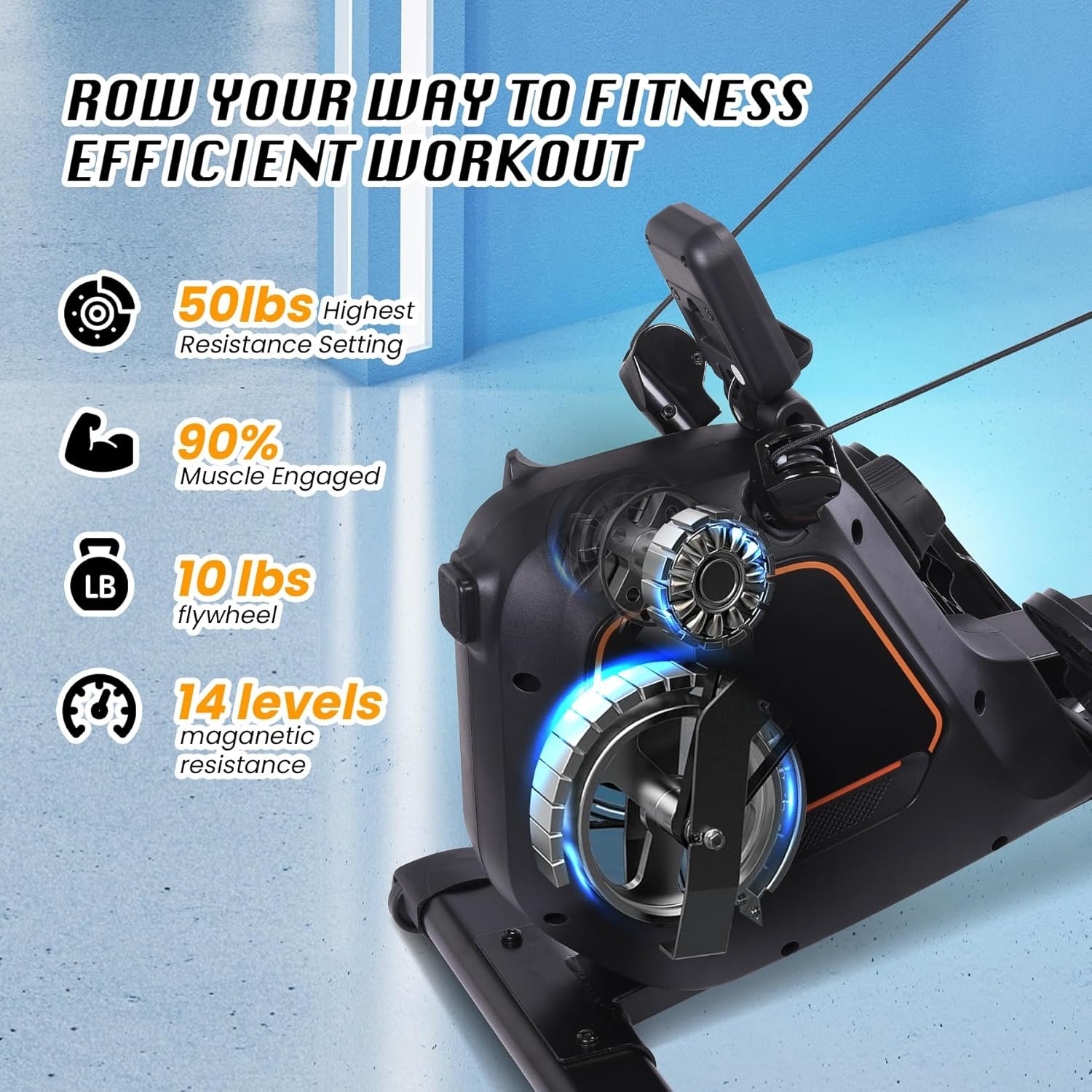 Adjustable Workout Resistance Level: This compact rowing machine offers 14 level of resistance for different exercise outcomes with 10-lb flywheel and premium magnetic control system. Level 1 to 4 helps users do the warming up activity; level 5 to 8 shapes users’ body ; level 9 to 12 keeps fat burning; level 13 to 14 allows users stretching muscles fully.