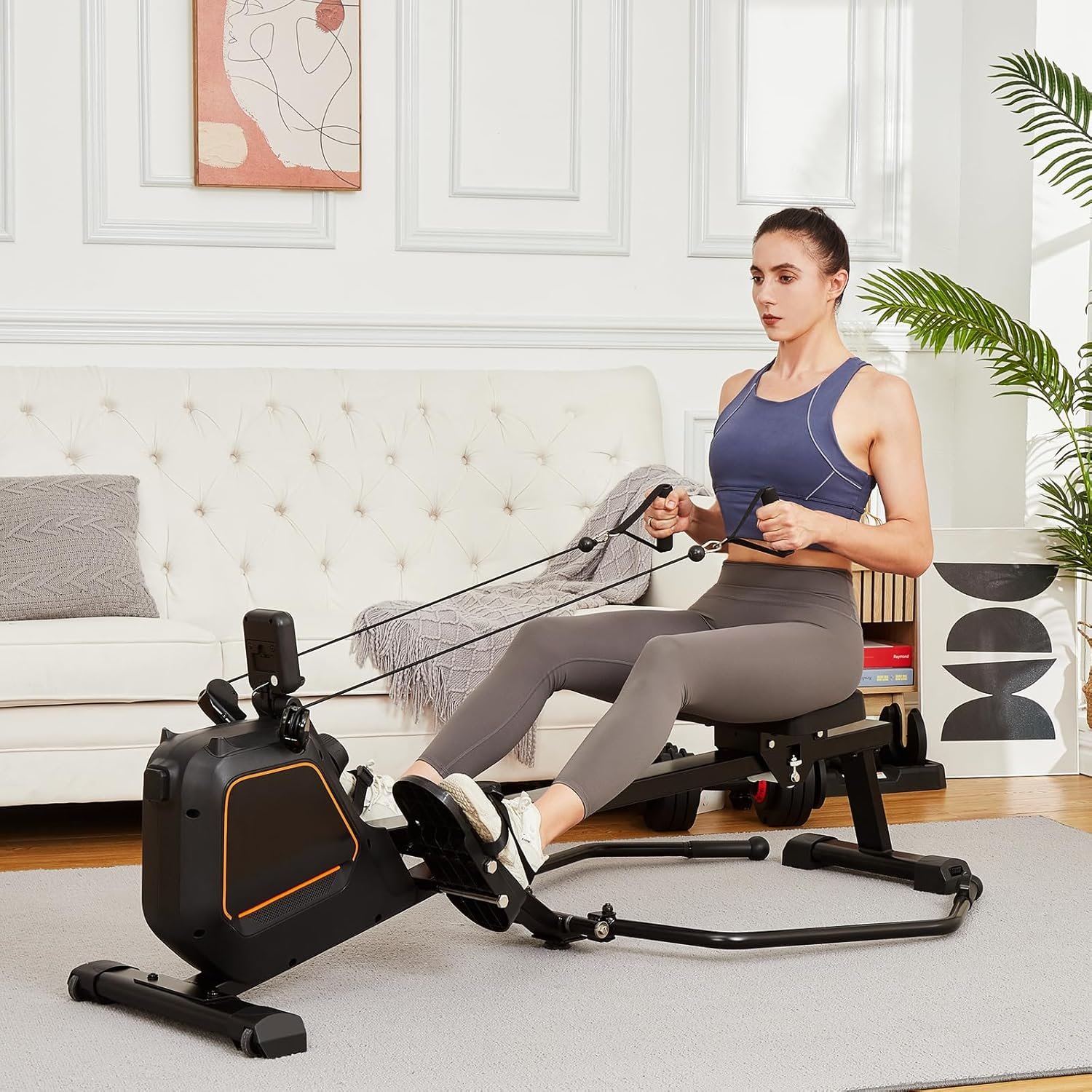 Visualization of Workout Data: The rowing machine can easily tack and display your workout data including distance, time, calories burned, speed, heart rate, cadence and so forth. These data present your exercising condition, allowing you to monitor the progress of your fitness plan.