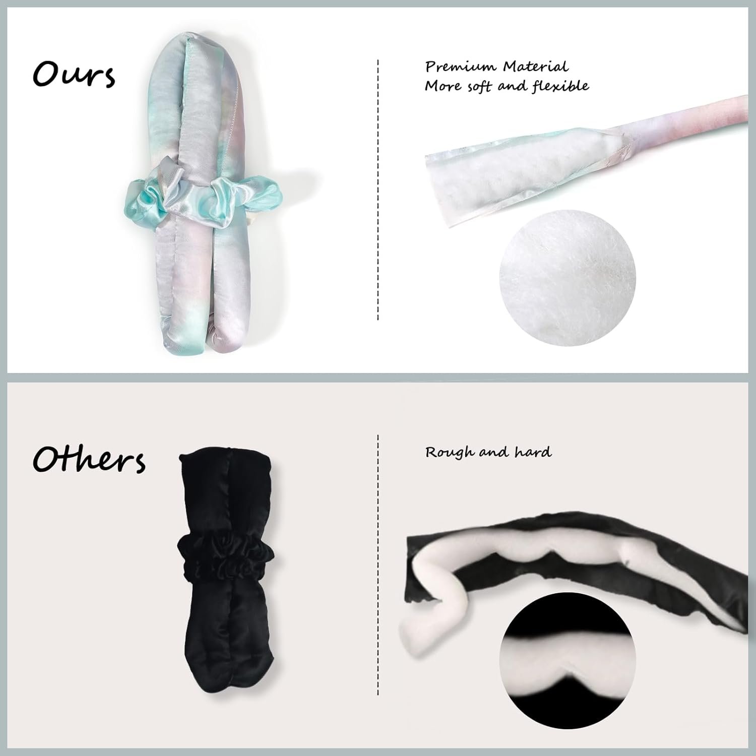 【Upgrade Satin Heatless Curler Band】 Upgraded curting headband is made of satin material outside and soft cotton fiber material inside; which is softer, and more comfortable to sleep in than the other versions. Our no-heat curler helps you hold the hair finalized and healthy easily