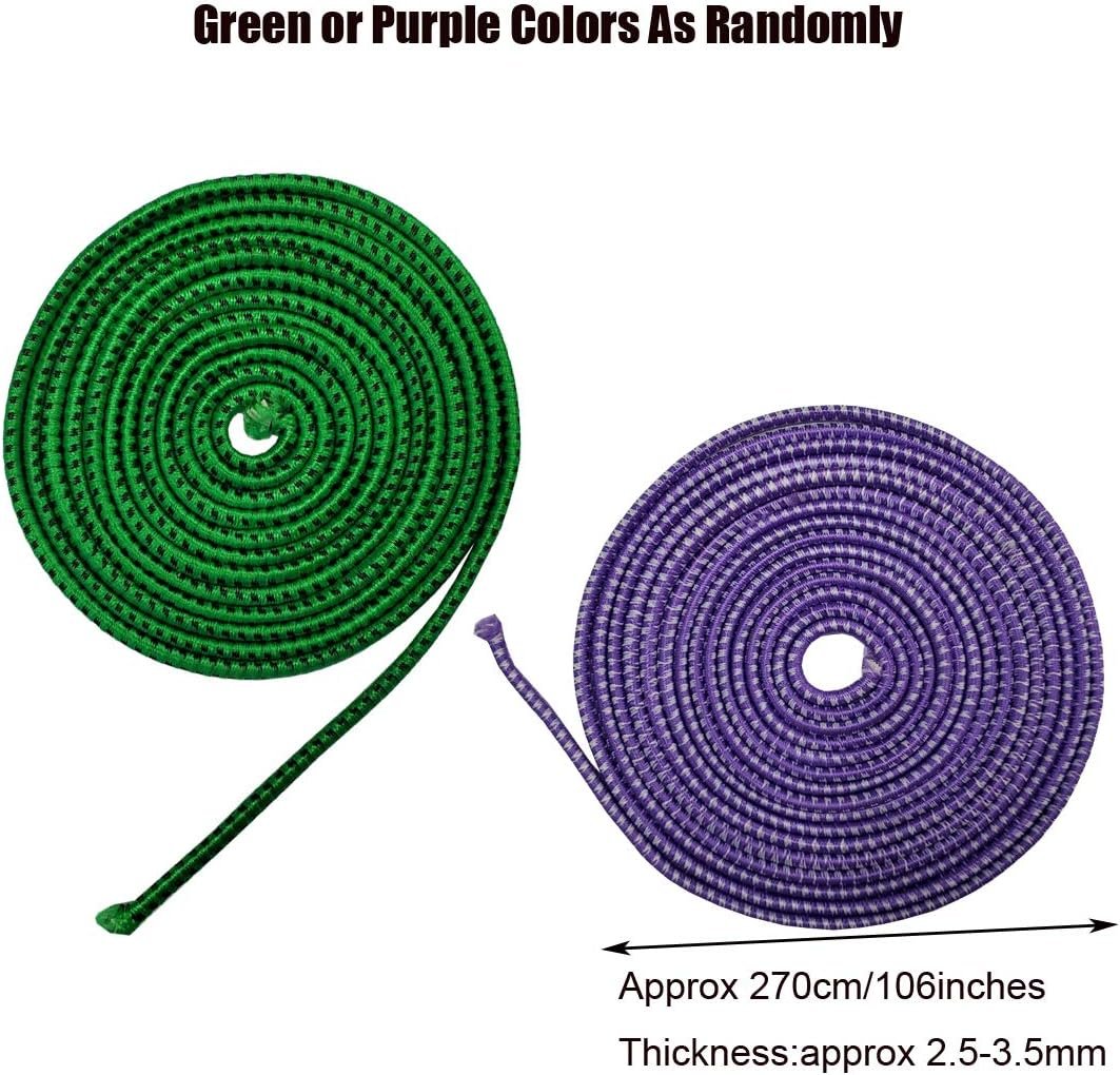 Colors and Material:Green and purple elastic ropes as random ,superior stretch and flexibility. and it is much durable and higher elasticity than average elastic bands.The rainbow string made of durable nylon material ,it do not have electricity.