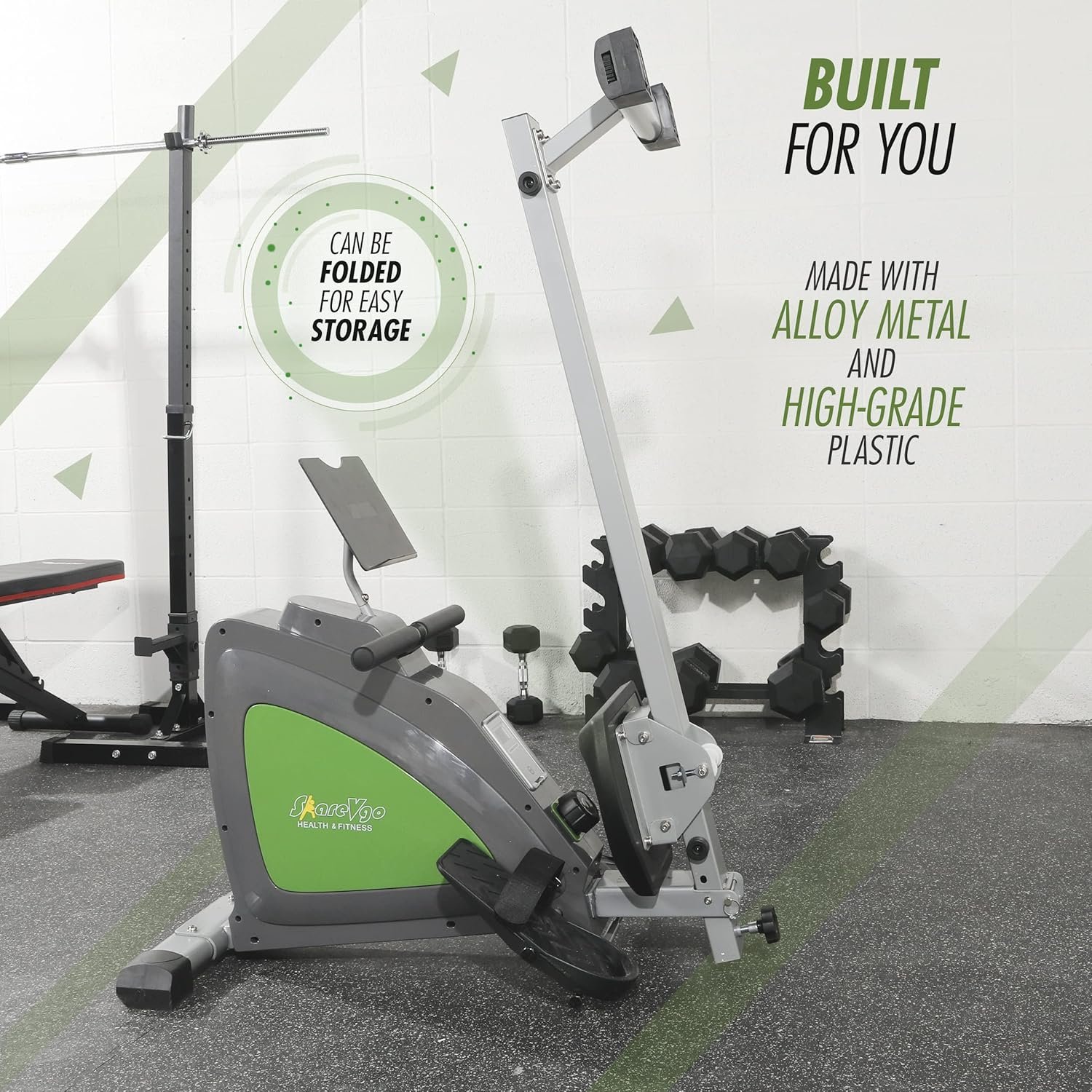 EASY ASSEMBLY and foldable design for home or office storage. STURDY rail with comfortable large seating, designed for people with all height and weigh up to 300 lbs. SMOOTH & QUIET 8-level magnetic resistance system provide men, women, seniors or elderly with different fitness goals for a low-impact indoor exercise.